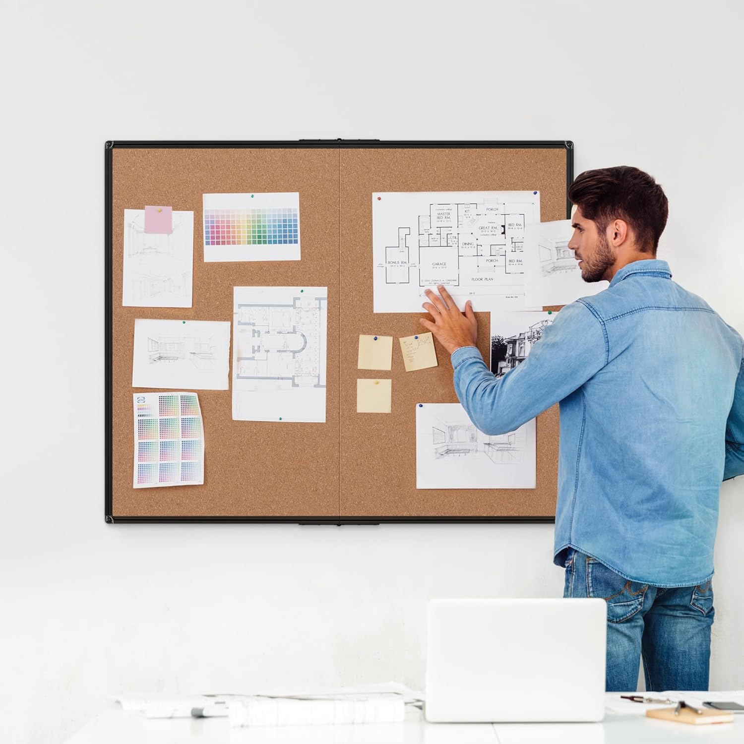 - Oversized & Foldable Design: The 48 x 48 inches bulletin board comes with a large displaying area of 46.4 x 46.4 inches, by an anti-scratch satin and robust aluminum frame, covered with four ABS plastic corners, sturdy and durable, foldable design for saving a space and more reliable transit