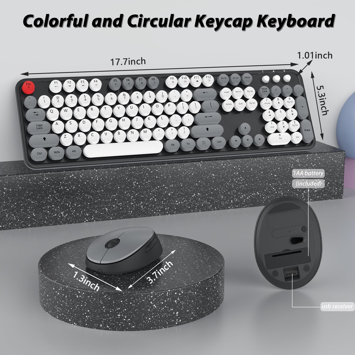 - 【RETRO ROUND KEYCAPS】 keyboard and mouse wireless with vintage typewriter-inspired rounded keycaps, gives you the most comfortable typing experience and adds some much needed spunk to your desk.