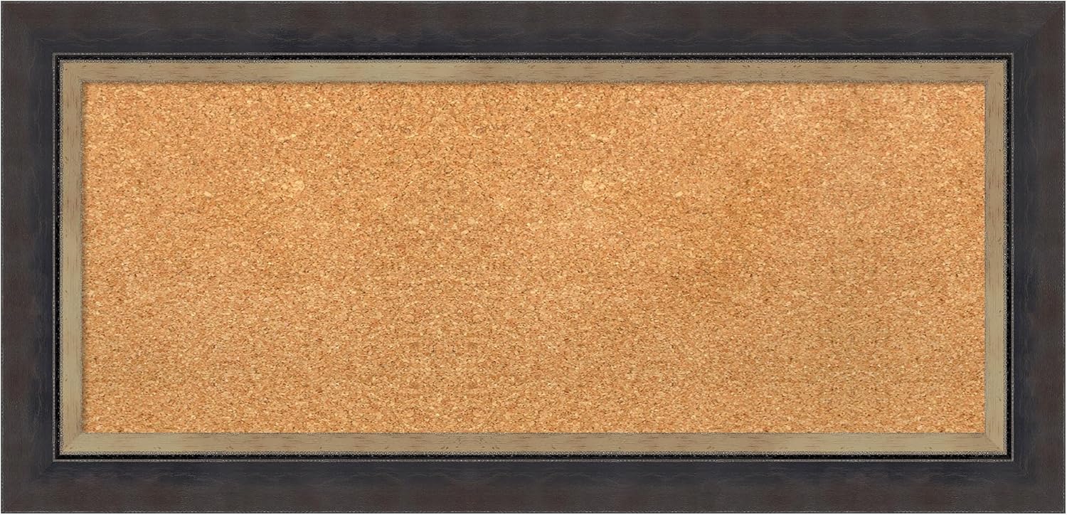 Amanti Art Natural Cork Board for Wall, 17x35 Vision Board with Black Wood Frame, Medium Corkboard Office Decor for Home Organization, Casual Corkboard Pinboard to Display Items for Home Organization