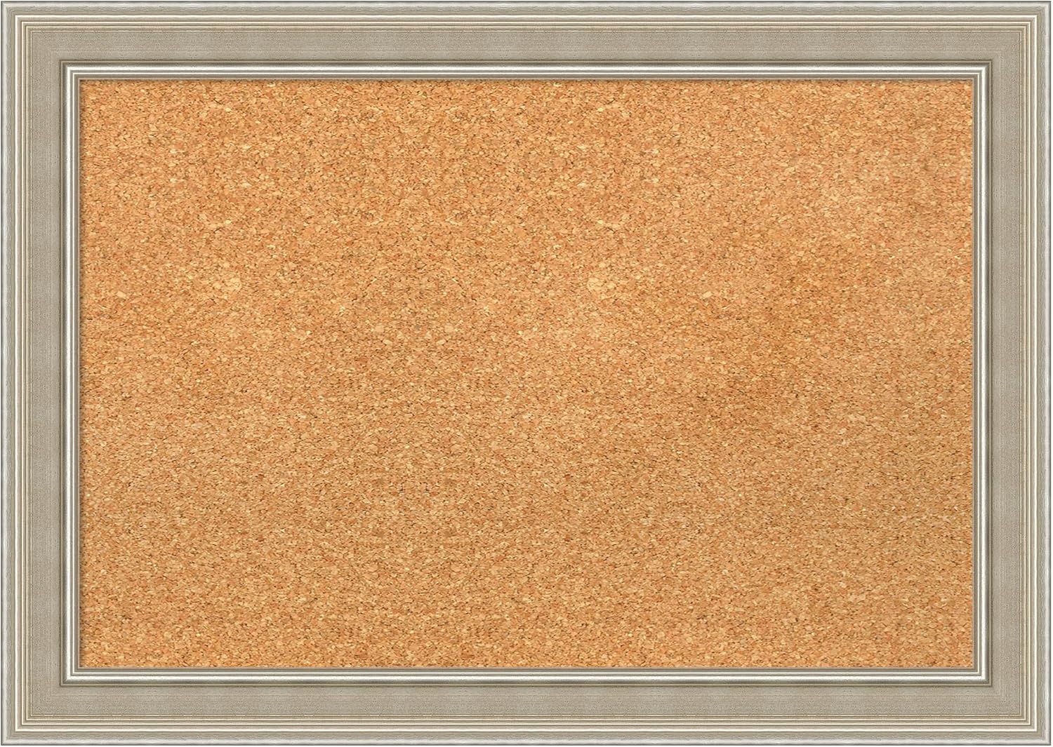 Amanti Art Natural Cork Board for Wall, 20x28 Vision Board with Silver Wood Frame, Medium Corkboard Office Decor for Home Organization, Modern Contemporary Corkboard Pinboard to display items for home