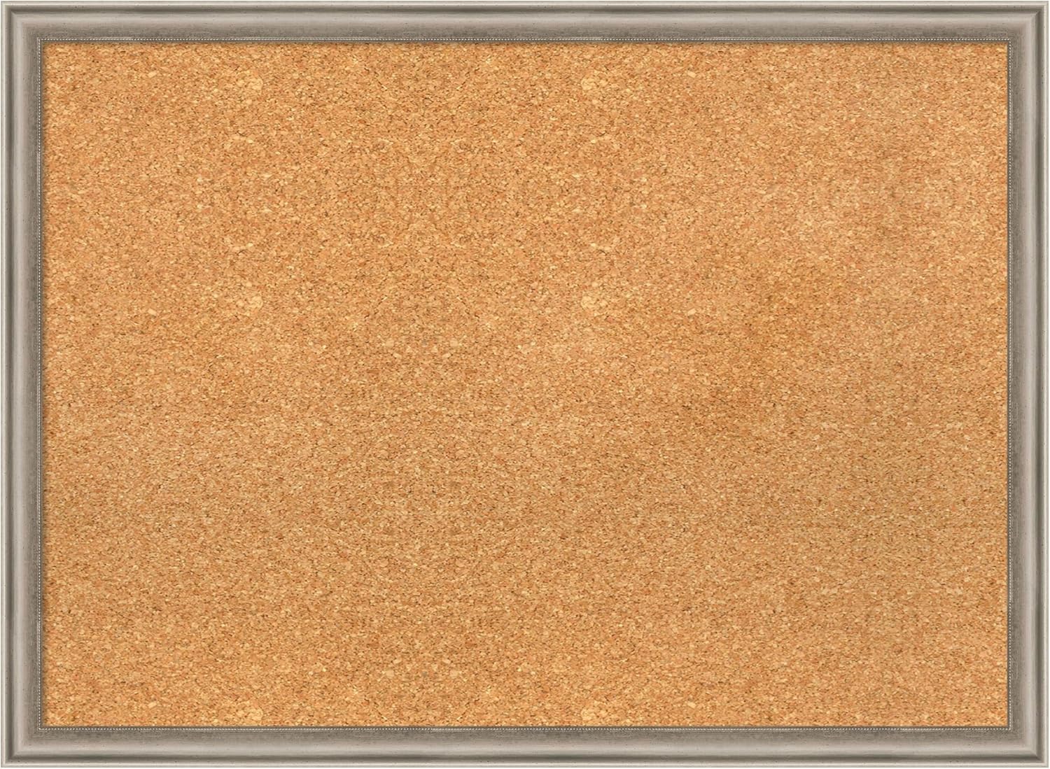 Amanti Art Natural Cork Board for Wall, 22x30 Vision Board with Silver Wood Frame, Medium Corkboard Office Decor for Home Organization, Casual Corkboard Pinboard to display items for home organization