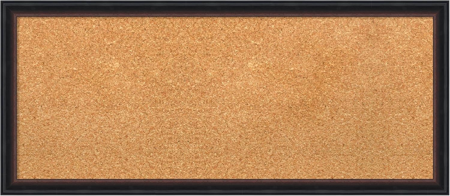Amanti Art Natural Cork Board for Wall, 14x32 Vision Board with Black Wood Frame, Medium Corkboard Office Decor for Home Organization, Casual Corkboard Pinboard to display items for home organization