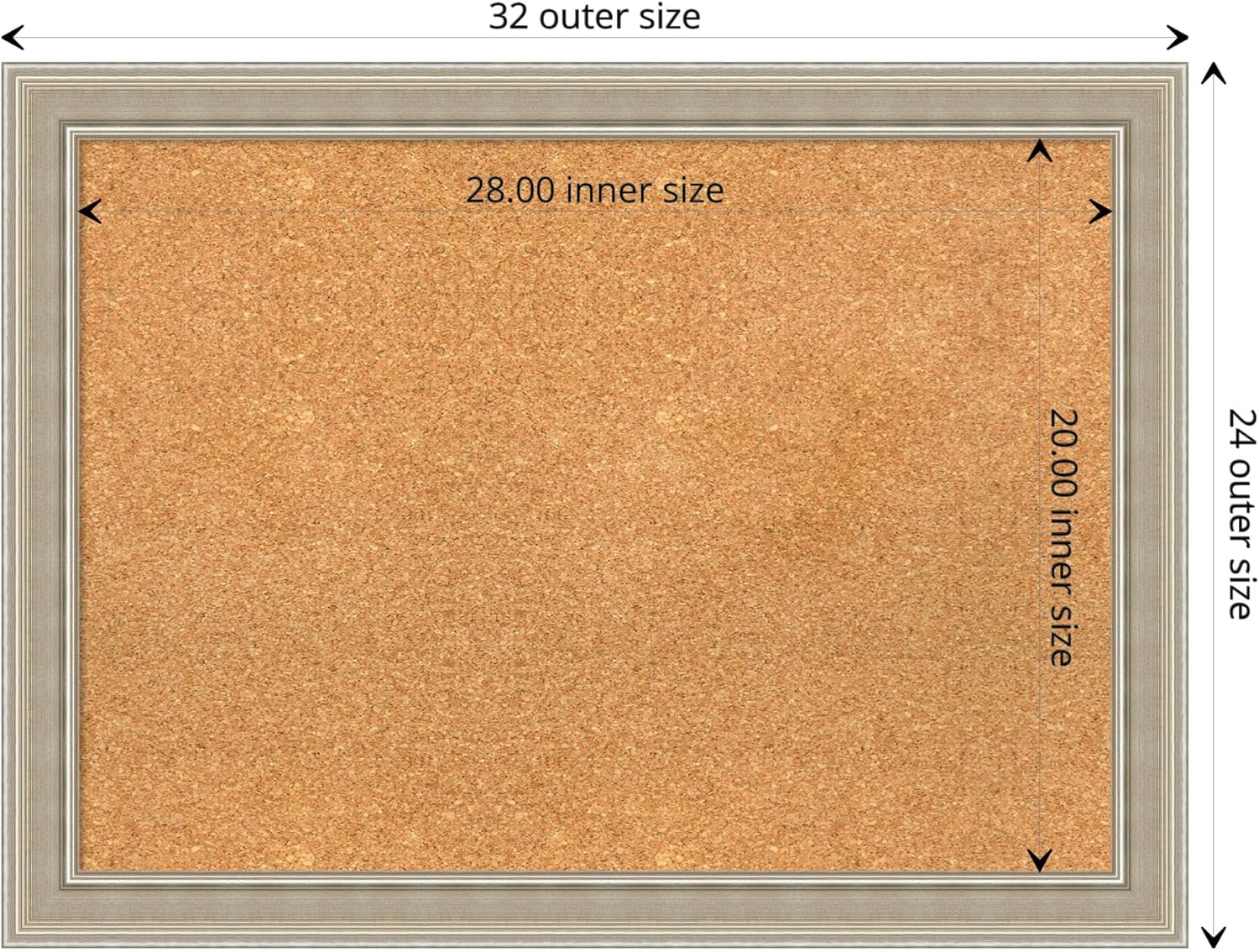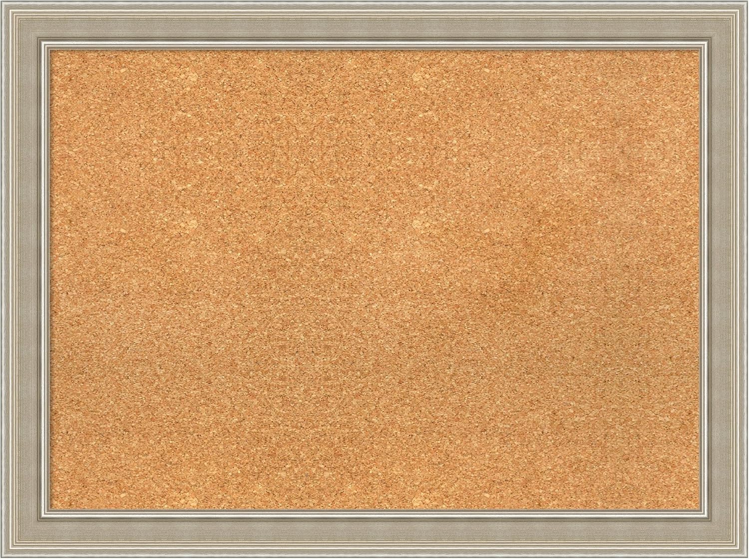 Amanti Art Natural Cork Board for Wall, 24x32 Vision Board with Silver Wood Frame, Medium Corkboard Office Decor for Home Organization, Modern Contemporary Corkboard Pinboard to display items for home