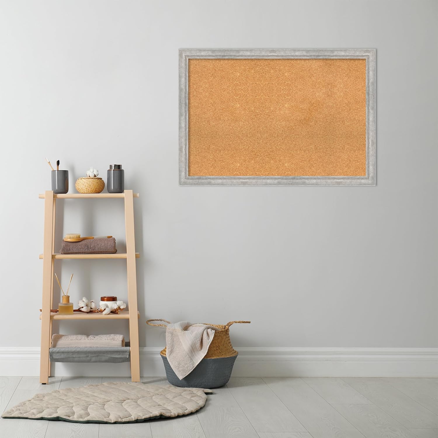 Amanti Art Natural Cork Board for Wall, 27x39 Vision Board with Silver Wood Frame, Large Corkboard Office Decor for Home Organization, Modern Contemporary Corkboard Pinboard to display items for home