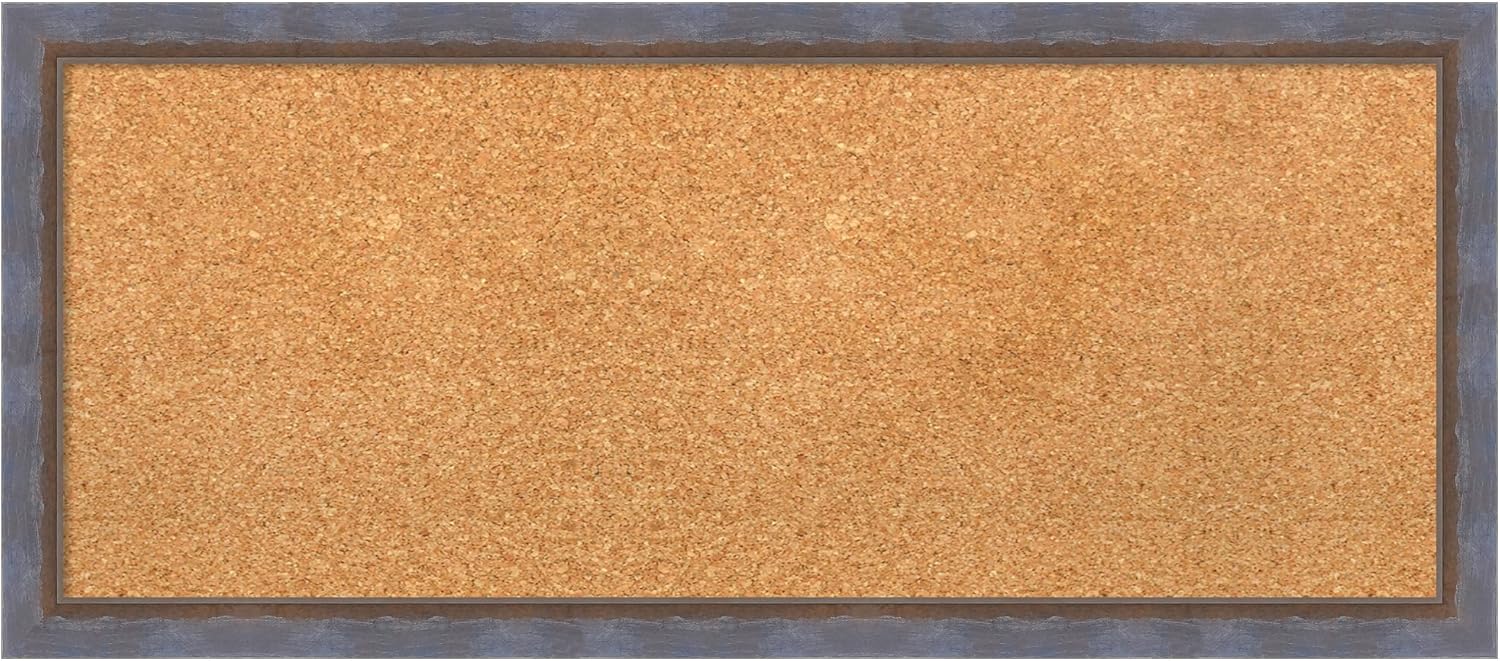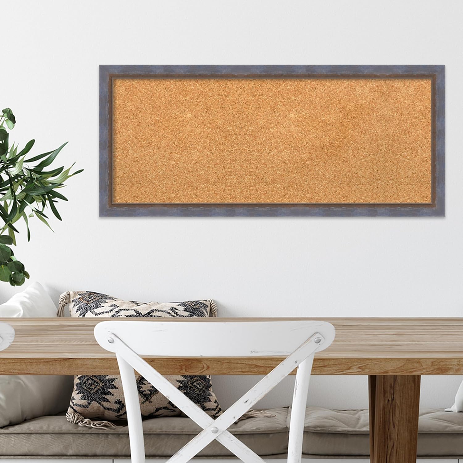 Amanti Art Natural Cork Board for Wall, 14x32 Vision Board with Blue Wood Frame, Medium Corkboard Office Decor for Home Organization, Modern Contemporary Corkboard Pinboard to display items for home