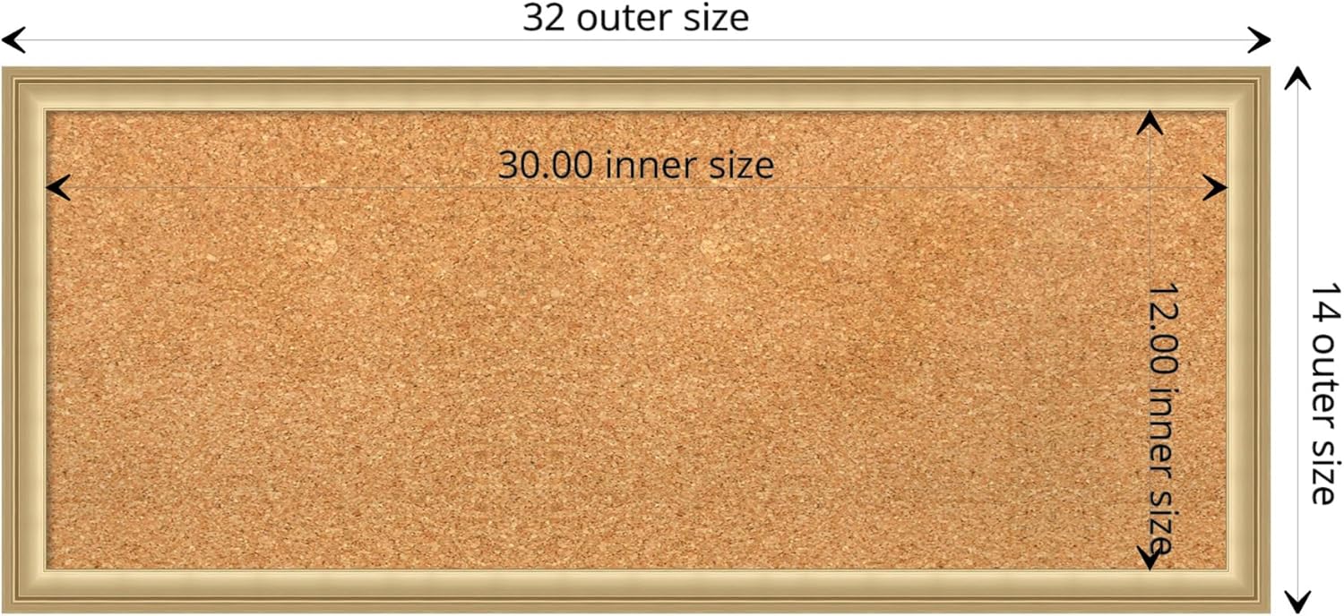 - DIMENSIONS: The overall size of this framed cork board measures 32 in. x 14 in., including the frame. Its functional cork board area measures 30 in. x 12 in.