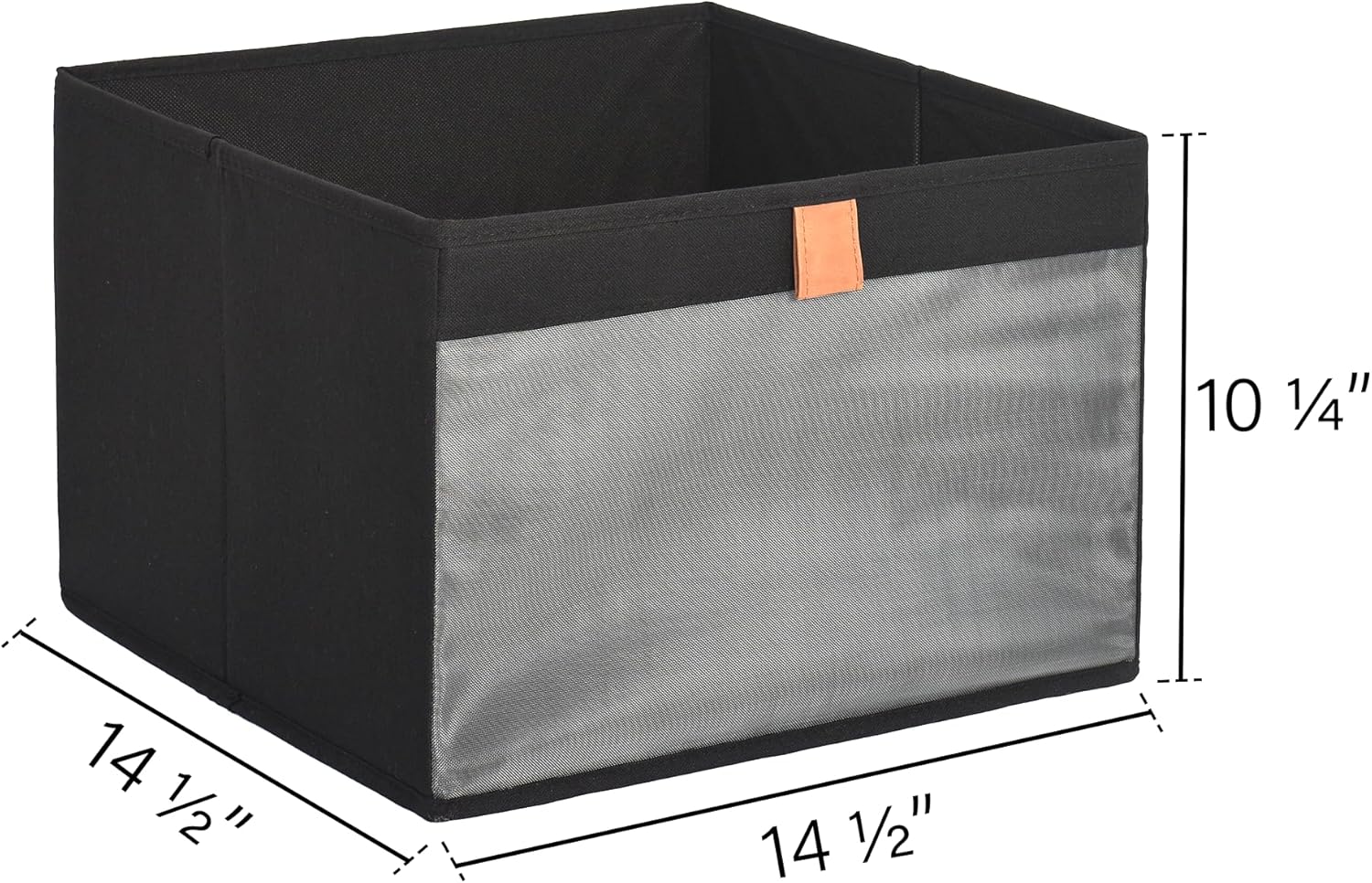 - The see-through window of the fabric shelf bins is made of highly breathable PVC mesh fabric with no chemical smell.