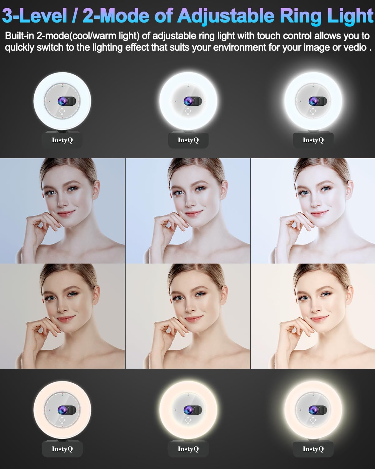 - 【3-Level/2-Mode Adjustable Ring Light】Featuring two lighting modes and a three-level brightness adjustment, this conference camera offers versatile lighting options and precise control over brightness, ensuring optimal visibility and enhancing the overall video conferencing experience.