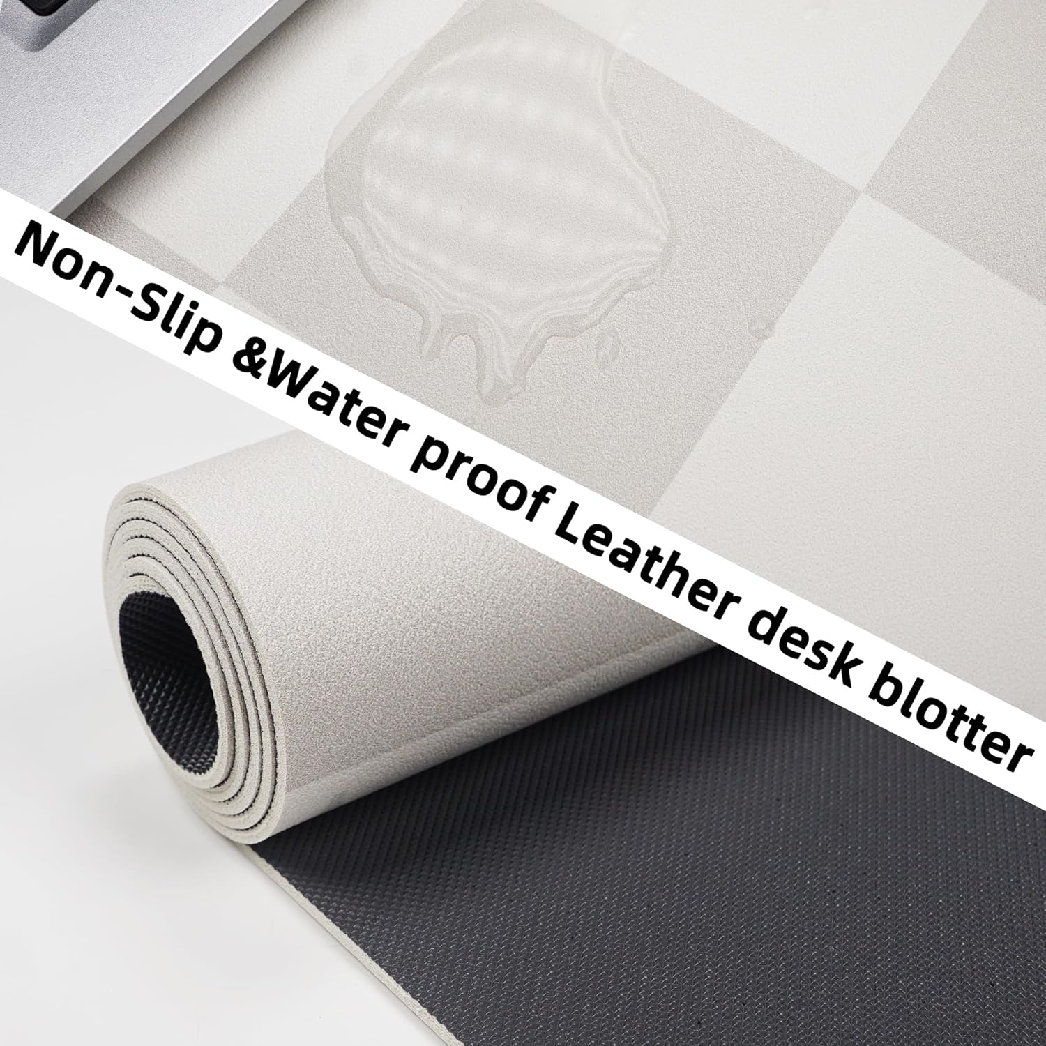 Non-Slip Desk mat, Leather Desk mat, Waterproof PU Leather Desk pad Protector, Large Mouse pad, Easy Clean Laptop Desk Writing Mat for Work/Home/Decor(31.5"x12", White Grey)