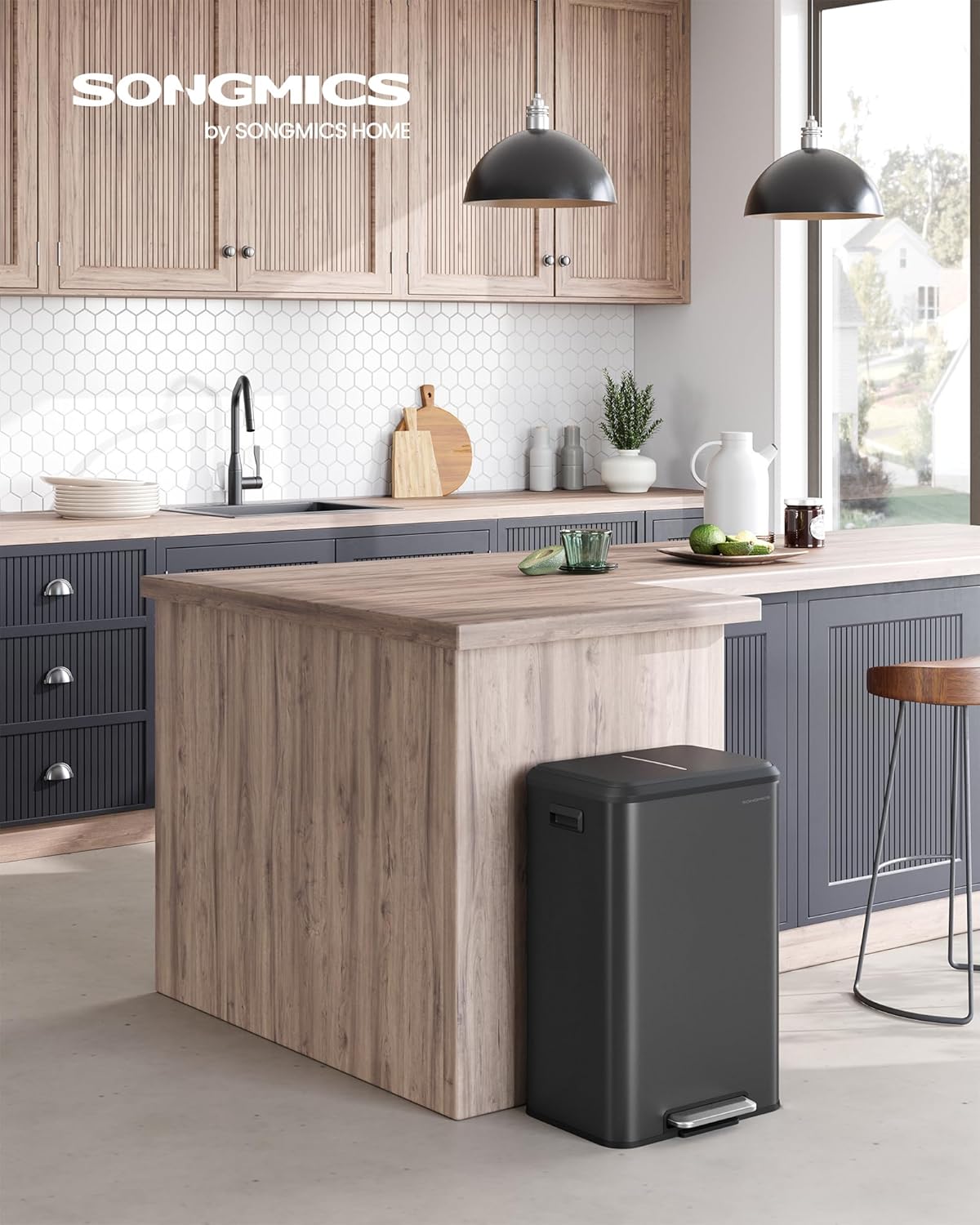 - [Soft-Close & Stay-Open] This garbage can has a lid that closes quietly and gently without slamming shut. Additionally, you can easily keep the lid open by lifting it to 90° for easy waste disposal when needed
