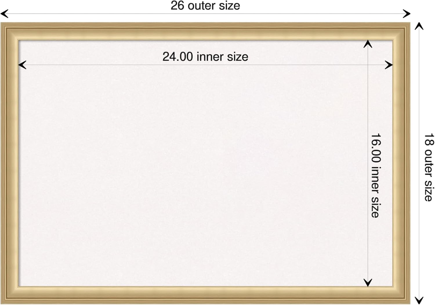 - DIMENSIONS: The overall size of this framed cork board measures 26 in. x 18 in., including the frame. Its functional cork board area measures 24 in. x 16 in.