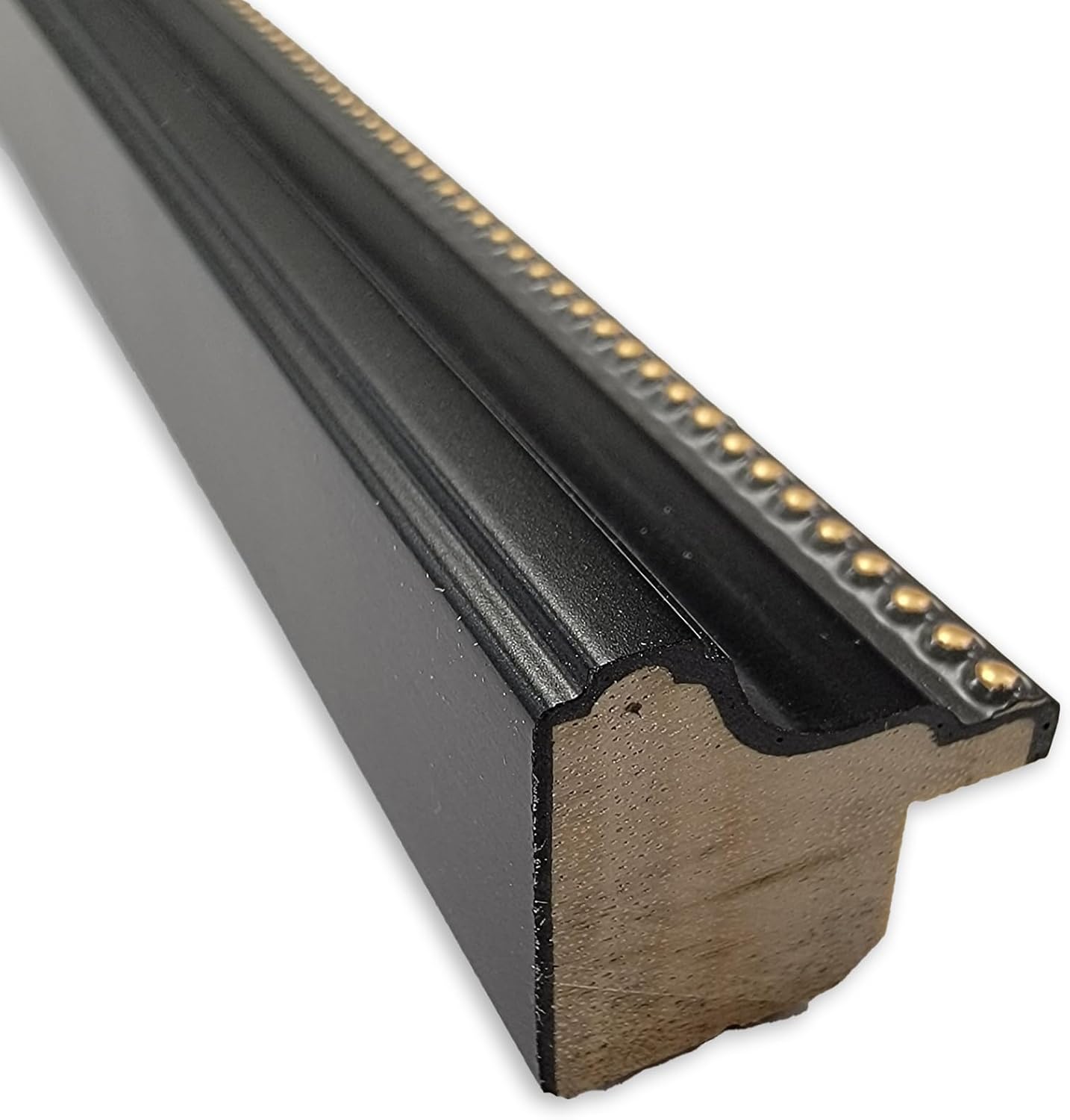 - 100% REAL WOOD FRAME DETAILS: The Stylish Black Narrow Frame is a satin black scooped profile frame with a taller outer ridge and a gold beaded inner lip. The frame is 0.75 in. wide and stands 0.75 in. off the wall.