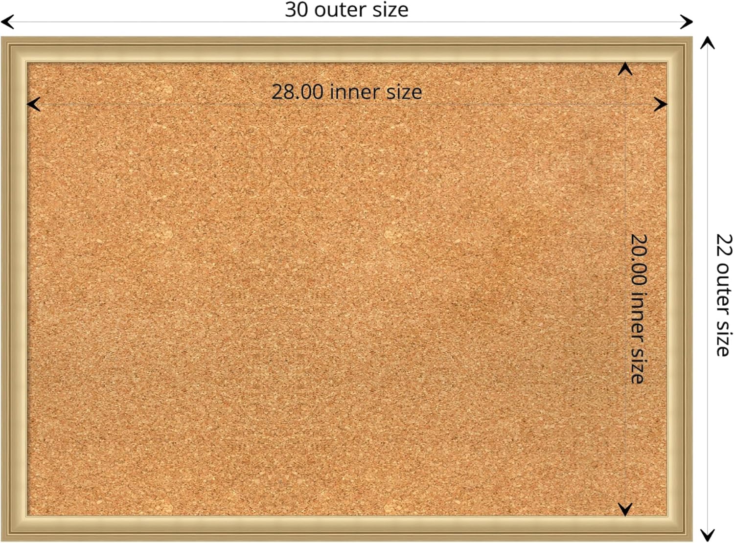 - DIMENSIONS: The overall size of this framed cork board measures 30 in. x 22 in., including the frame. Its functional cork board area measures 28 in. x 20 in.
