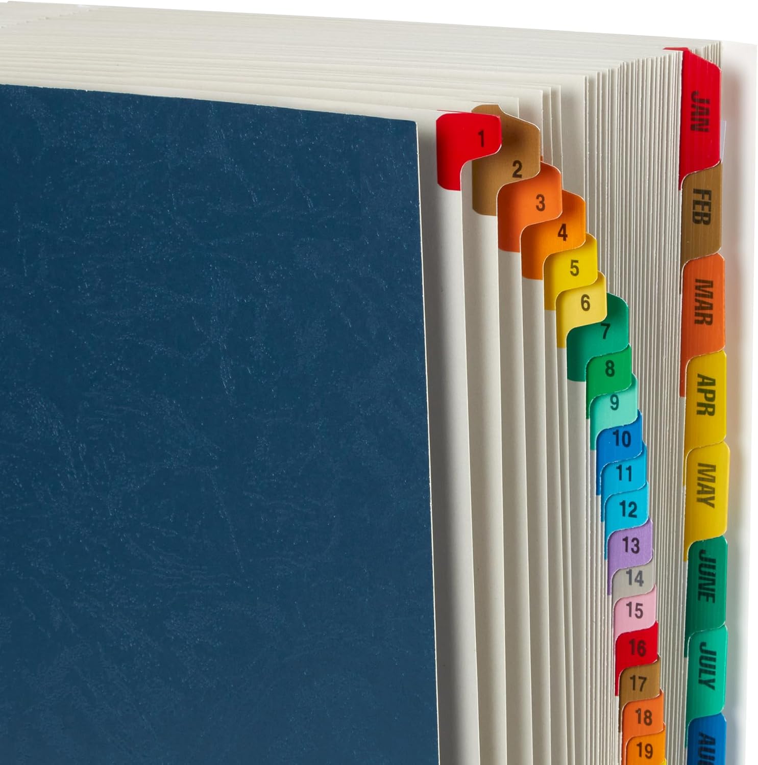 - 12 dividers indexed monthly and 31 dividers indexed daily for clear organization