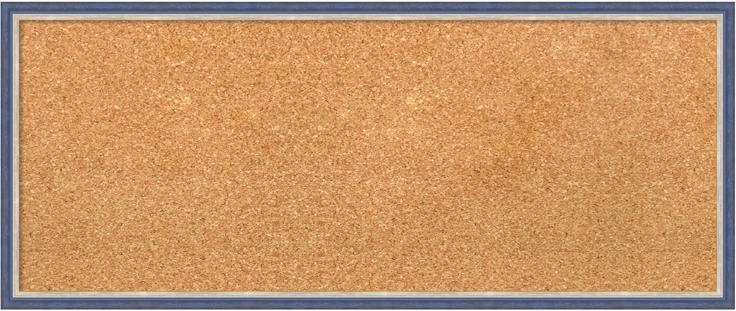 Amanti Art Natural Cork Board for Wall, 13x31 Vision Board with Blue Wood Frame, Medium Corkboard Office Decor for Home Organization, Modern Contemporary Corkboard Pinboard to display items for home