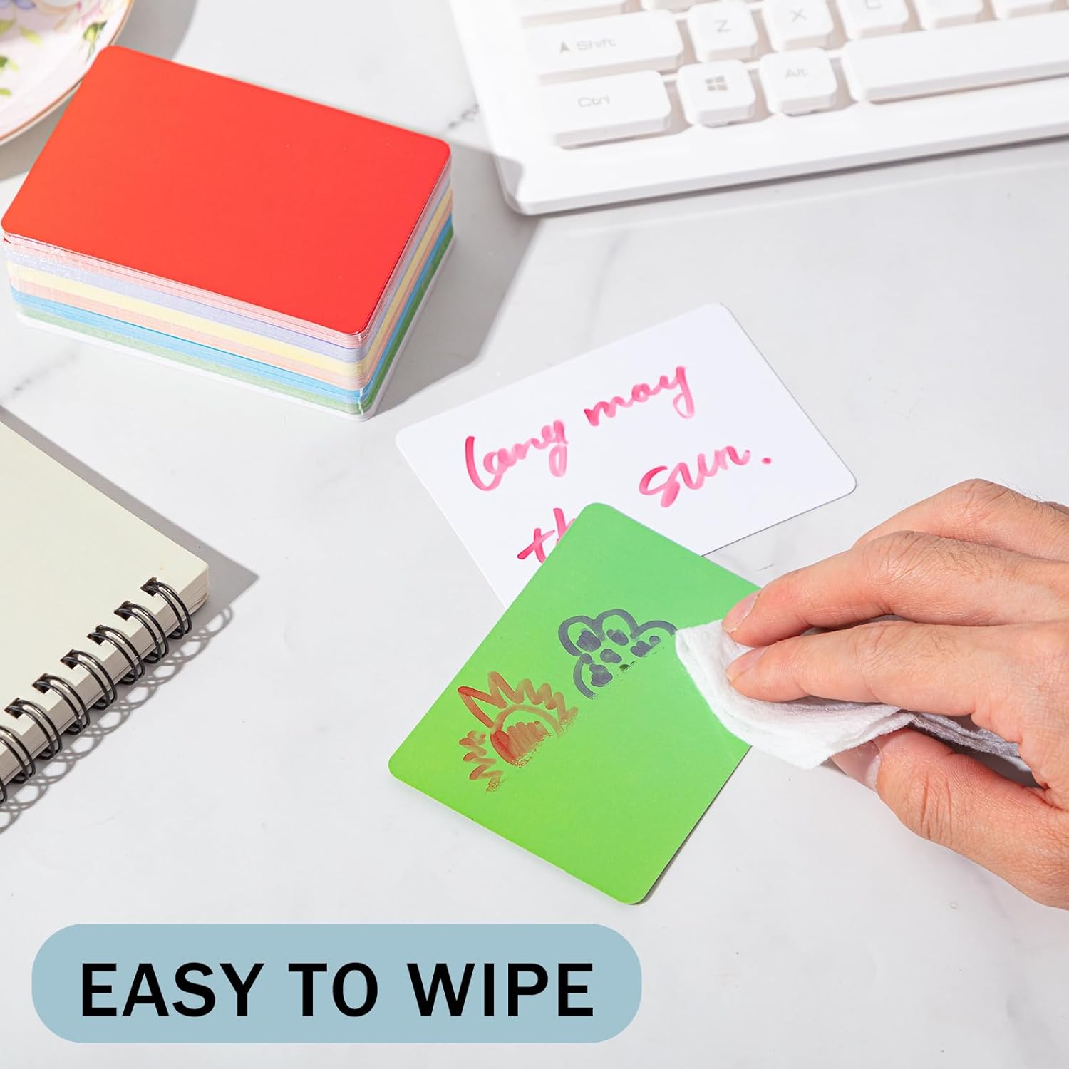- Dry Erase Design: dry erase notecards have smooth and reusable surfaces, so you can write and draw on them at freedom with marker pens (not included), and the words or patterns can be easily wiped with wet cloth or eraser, leaving no trace, which will also reduce paper waste