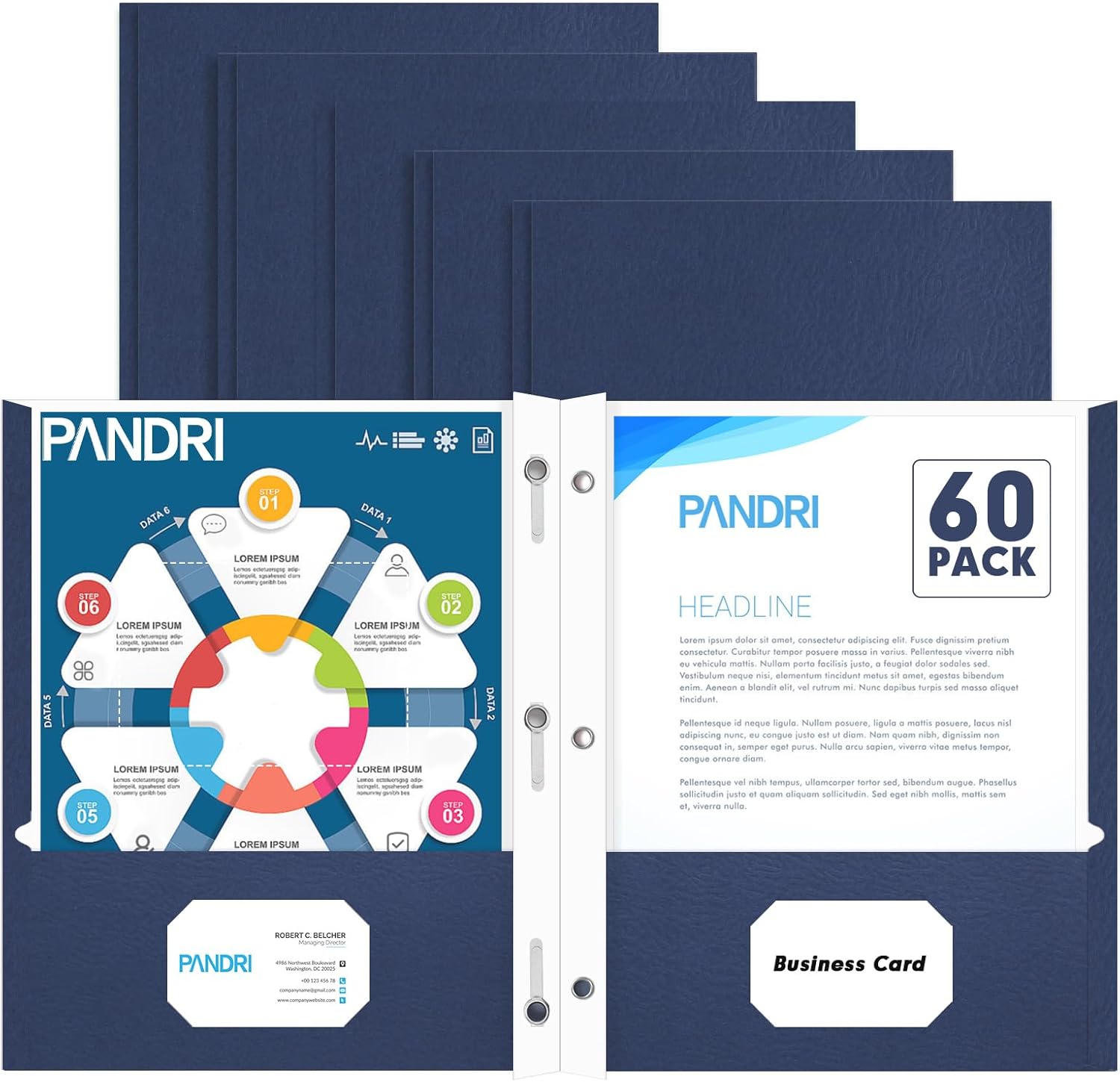 Two Pocket Folders, PANDRI 60 Pack Two Pocket Folders with Prongs, 3 Prong Folders Designed for Office and Classroom, Letter Size Darkblue