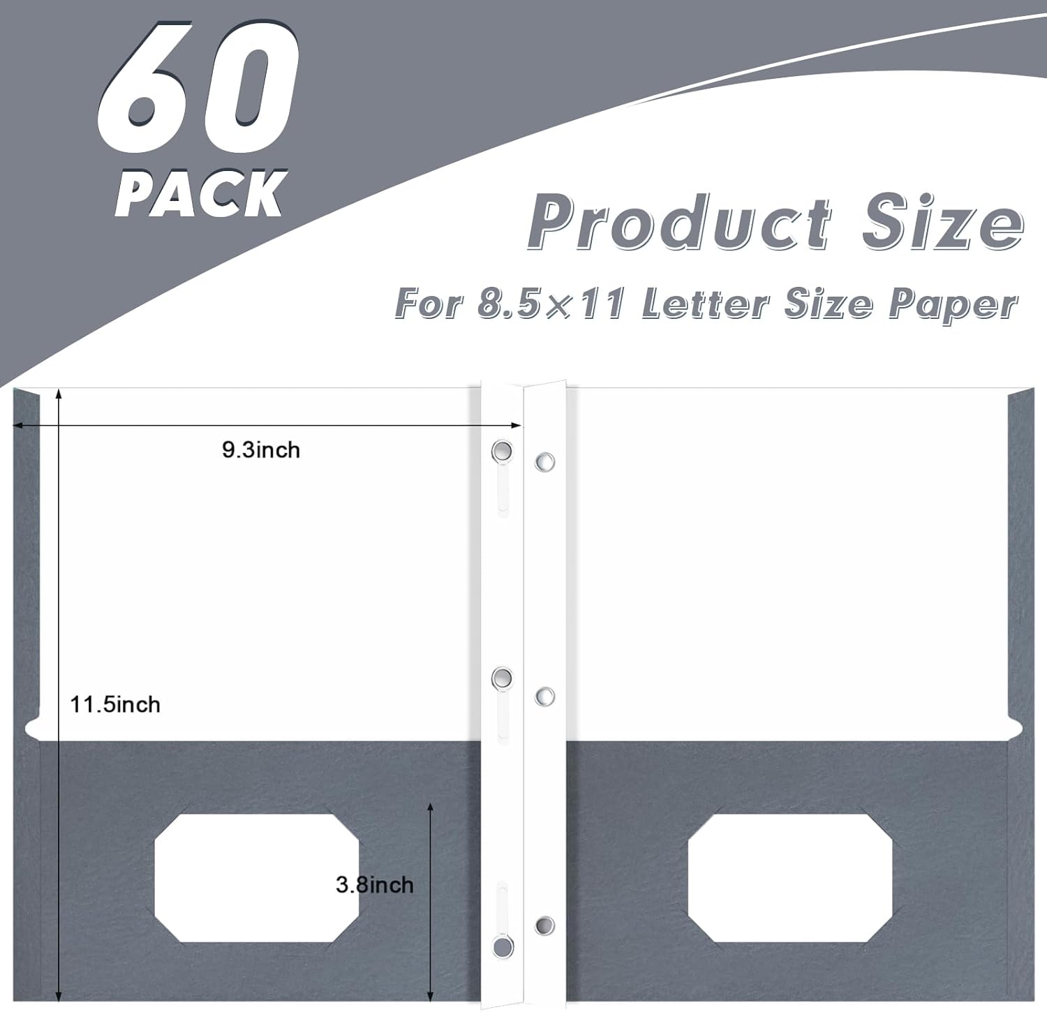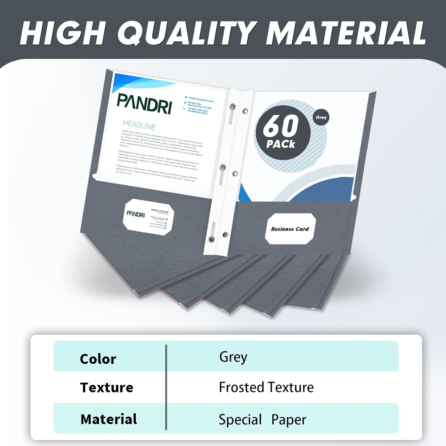 Two Pocket Folders, PANDRI 60 Pack Two Pocket Folders with Prongs, 3 Prong Folders Designed for Office and Classroom, Letter Size Grey