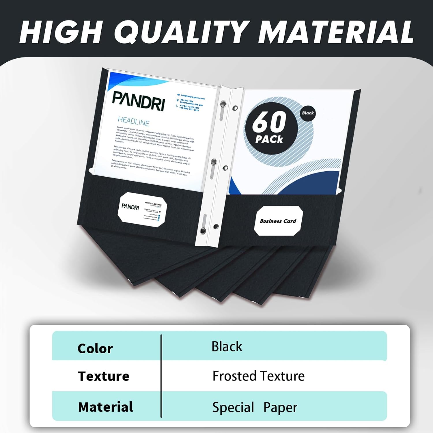 Two Pocket Folders, PANDRI 60 Pack Two Pocket Folders with Prongs, 3 Prong Folders Designed for Office and Classroom, Letter Size Black