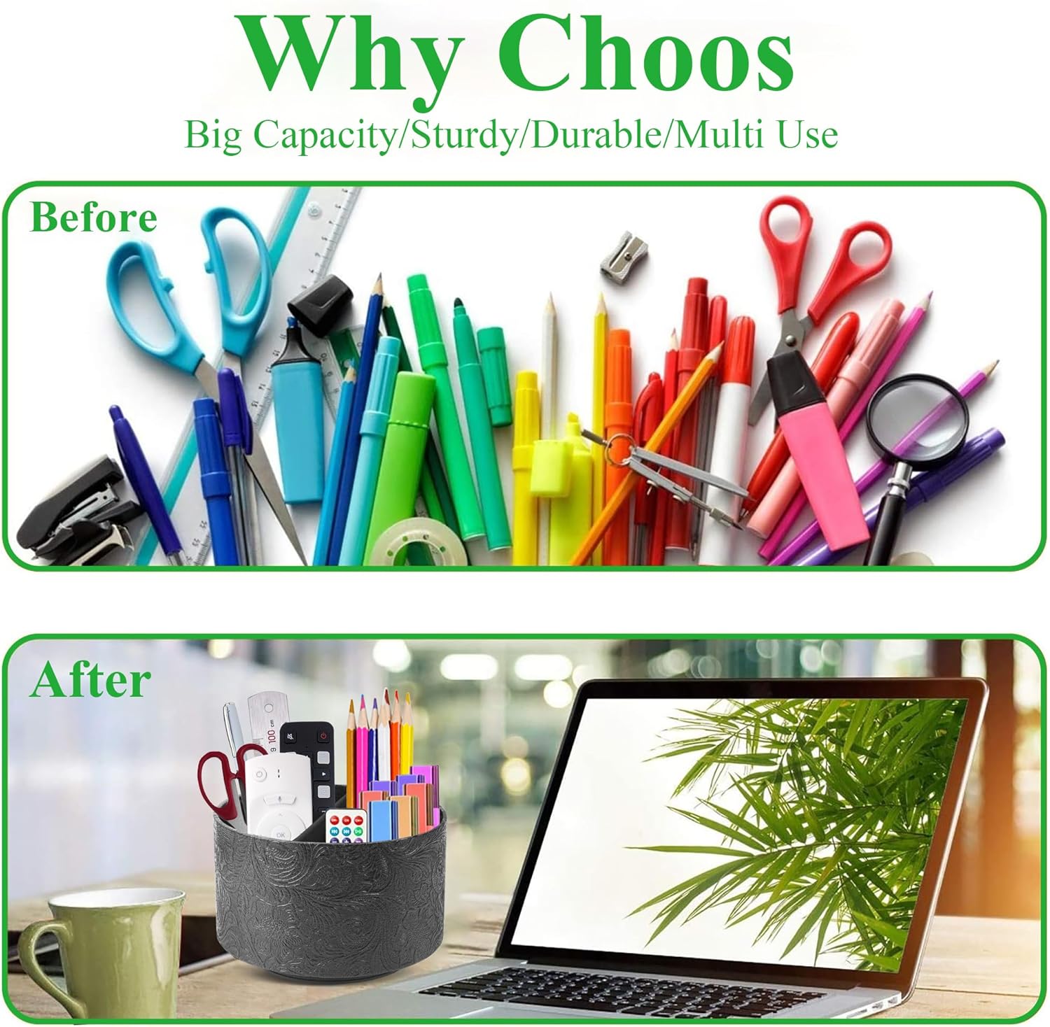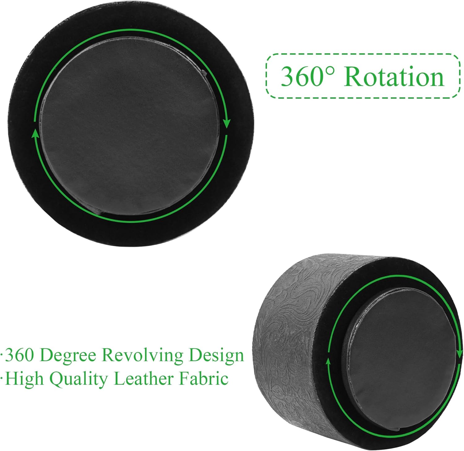 lizimandu Round Leather Art Supply Organizer,Remote Control Holder,360 Degree Spinning,Multi-Functional Pencil Holder,4 Compartments Desktop Stationary Organizer(1-Black2)