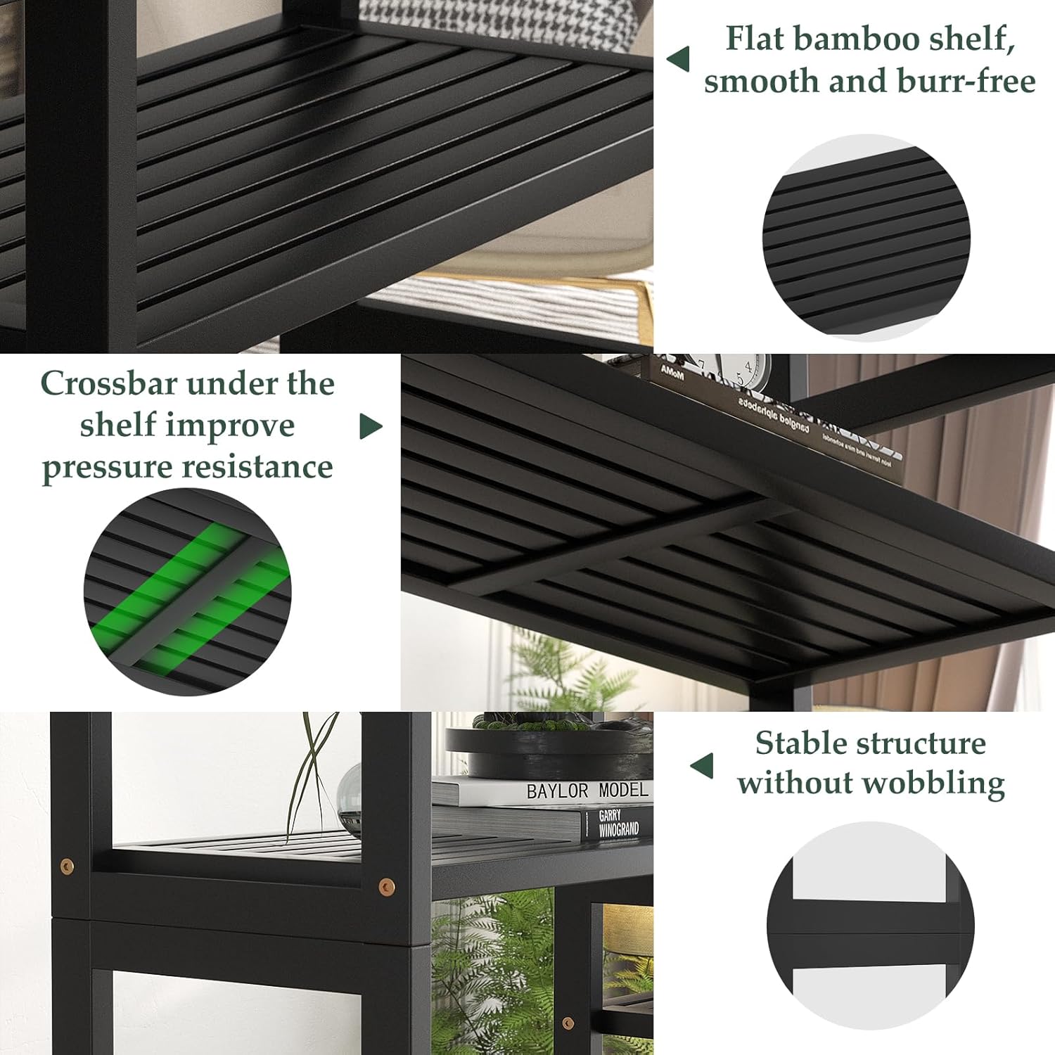 - Lightweight and Strong: The large bookshelf is made of superior bamboo, lightweight and durable. Thickened shelves and frames provide high load-bearing capacity. Varnished surface of the wide bookcase is smooth and burr-free. Natural wood aesthetic fits your decor in any room.