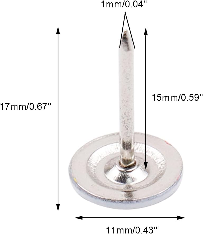 - PACKAGE CONTENT: 100Pcs white flat head upholstery tacks, enough quantity to meet your daily needs. Total Size:11mm*17mm/ 0.43" * 0.67"(Dia.xH), elegant for furniture decoration
