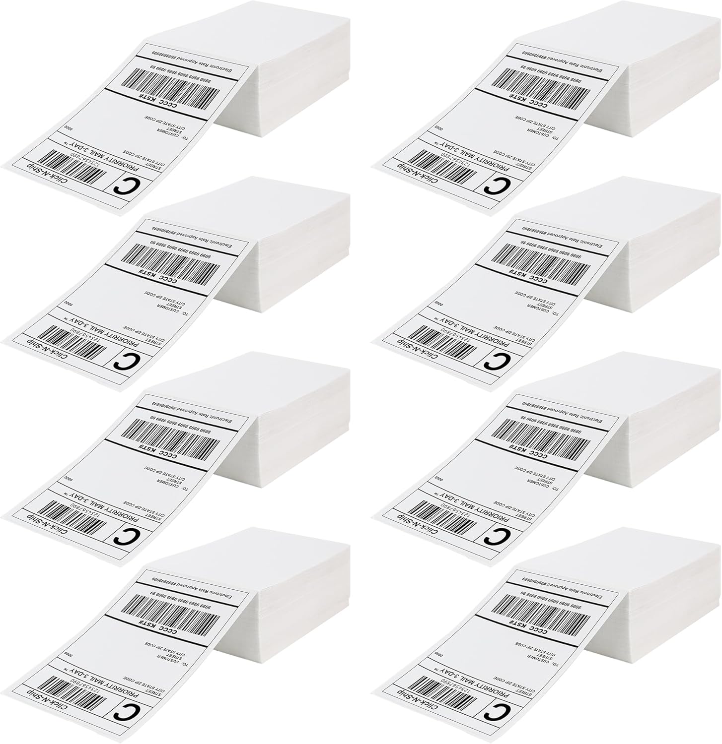 Fanfold Direct Thermal Shipping Labels 4''x6'' 2400 Labels/8 Stacks (300 Pcs per Stack), Compatible with Zebra Rollo Beeprt Printer Ultra Adhesive