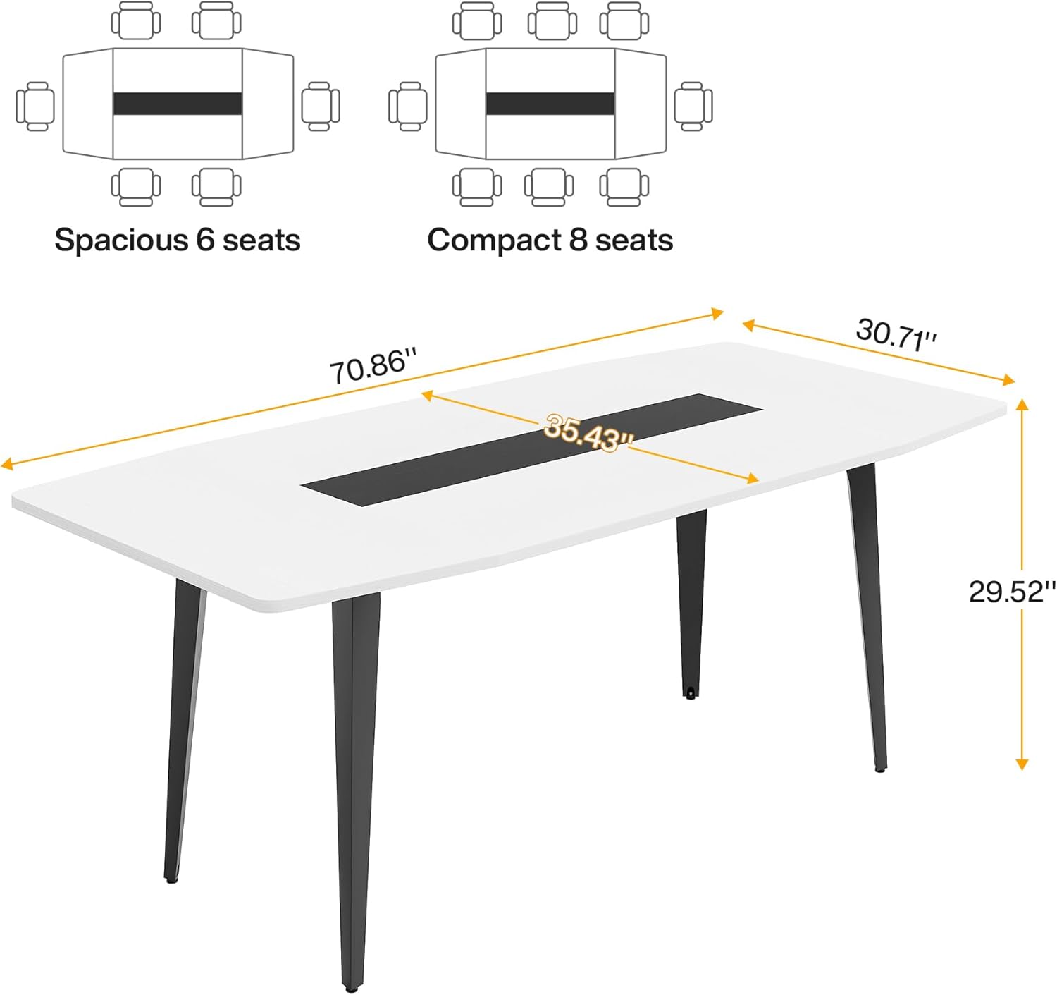 - 【Multi-purpose】Elevate the style and functionality of your office or dining room with this 6ft conference table. Its modern boat-shaped design adds a touch of sophistication to any room, while its versatile construction allows it to seamlessly transition from a conference table to a chic dining table. Whether you're hosting a team meeting or enjoying a family dinner, this table is the perfect choice for those who demand style and flexibility in their furnishings.
