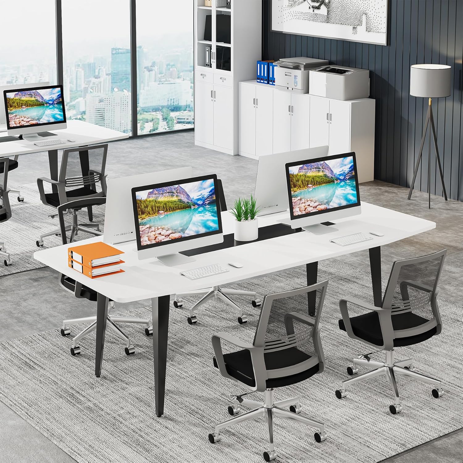 - 【Long-Lasting Quality】Constructed by boat panel and metal frame, this meeting table is steady and sturdy. In addition, the scratch- and stain-resistant laminate finish helps it better withstand everyday office use and maintain its professional appearance for longer.