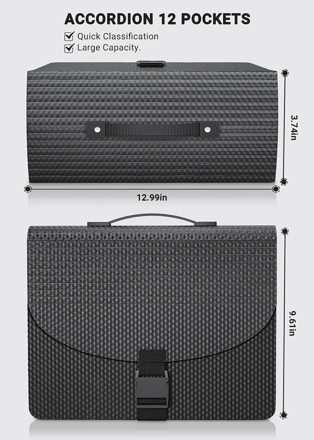 - ✔【UPGRADED】This innovative 13 Pockets expanding file folder designed with a durable plastic handle and a fashion buckle, successfully upgraded from traditional accordion file organizer. More easily take all important documents away to any time and anywhere when hold a good amount of documents, the buckle is perfect to protect the safety of files.