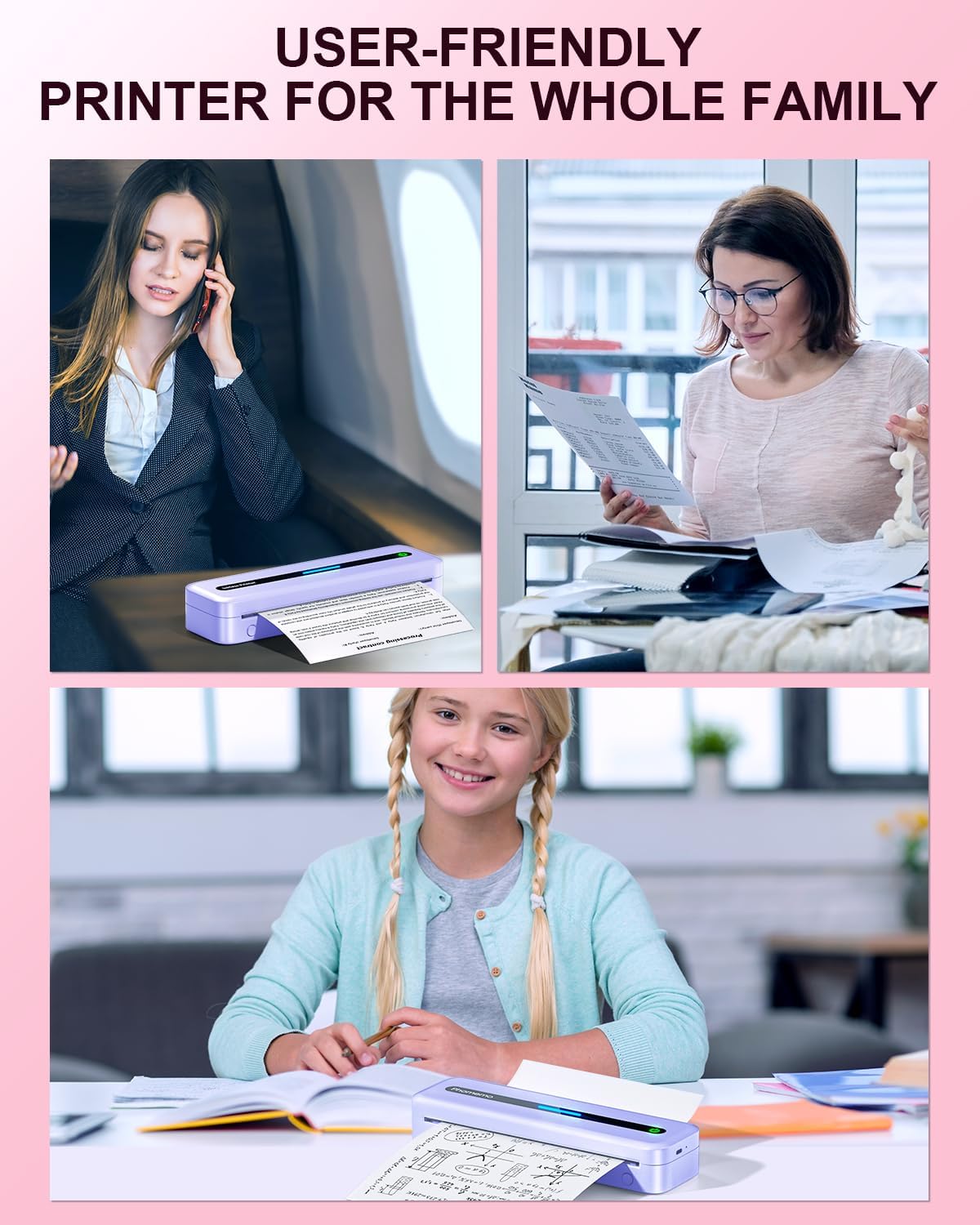 COLORWING Portable Printers Wireless for Travel, 300DPI Mini Compact Inkless Printer, Thermal Bluetooth Printer Compatible with Android and iOS Smartphone & Tablet & Laptop - Purple