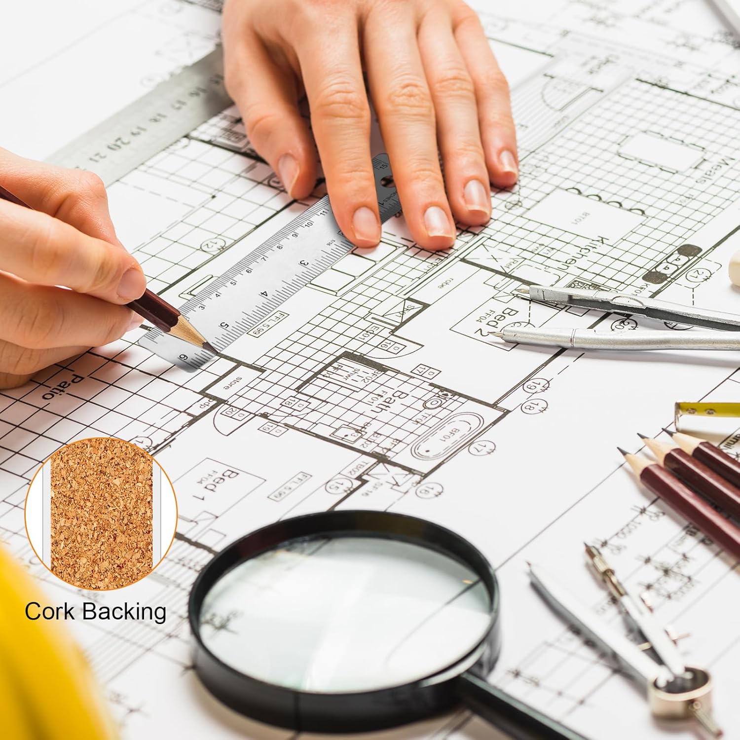 - Dual Scale: cork backed ruler features a dual-scale design that provides precise inch and metric measurements, etched and filled with paint so you can easily see and read accurate values