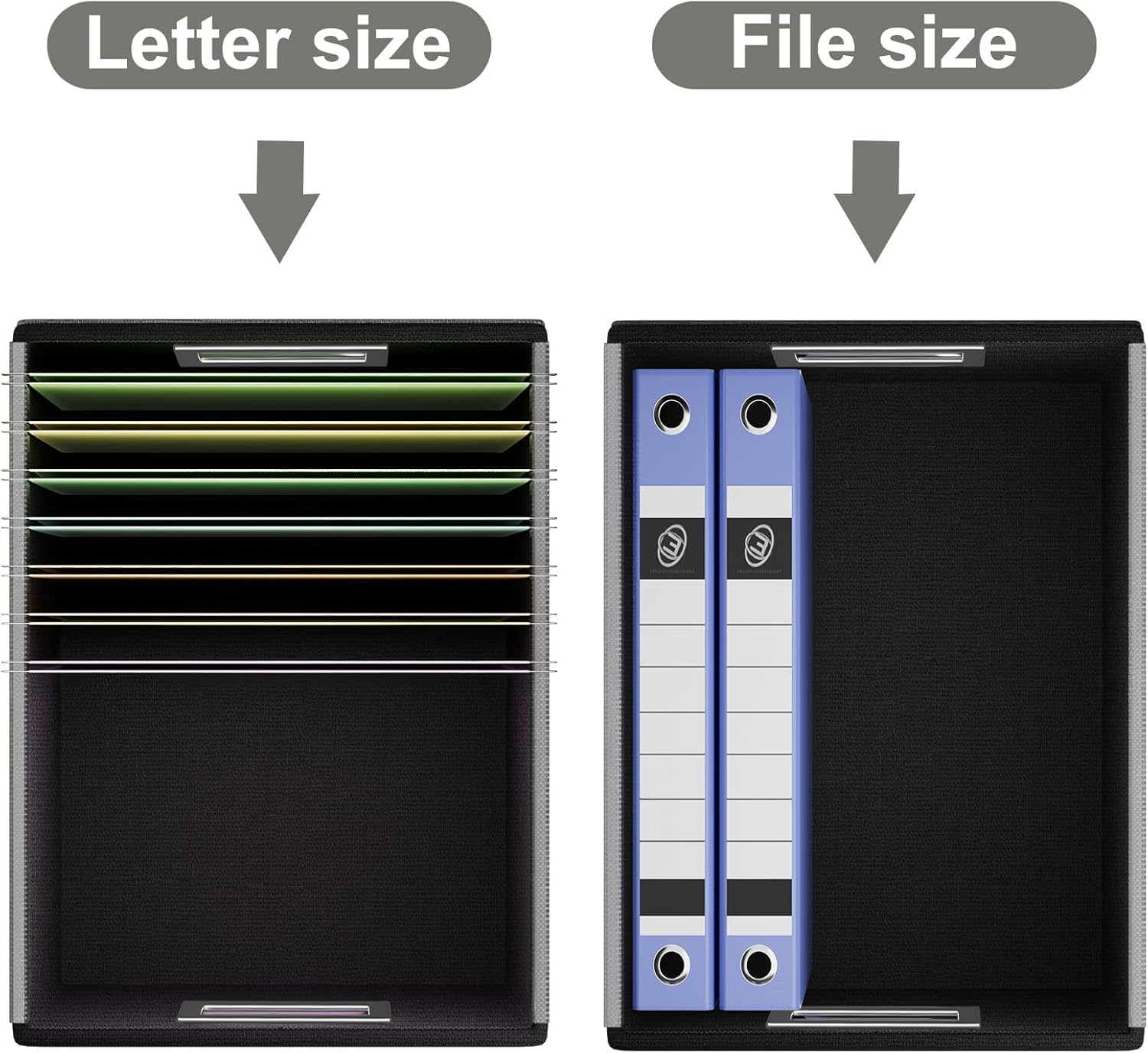 - Collapsible Multifunctional Filing Storage Organizer - The outer box with leather can be dustproof, inside and the bottom support is made of thickened cardboard, which is environmentally friendly and not easily deformed. The cover with Velcro not only allows us to cover the file box easily, but provides more storage space for the file. It also acts as a small filing cabinet for tax documents, legal files and other documents storage. When we are not using it, we can fold it up to save space.