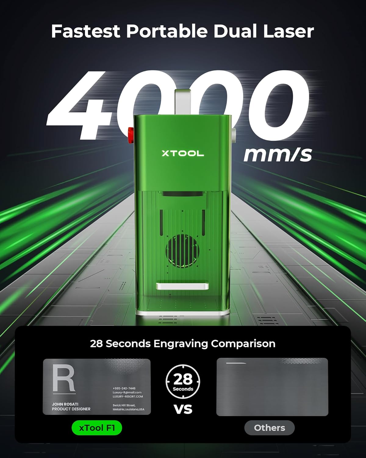 xTool F1 2-in-1 Dual Laser Engraver with Slide Extension, Rotary Extension and Smoke Purifier, Lightning Speed Portable Fiber Laser Engraver for Metal Wood