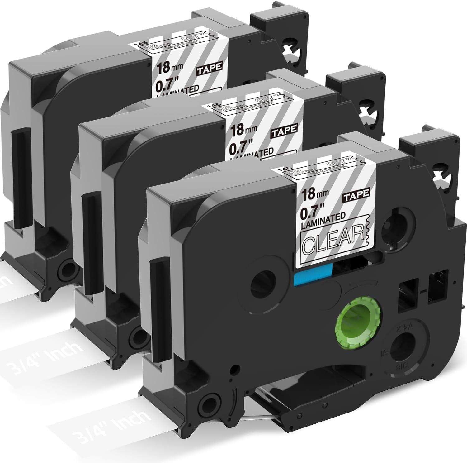 - Color: White on Clear, 3-pack replacement for Brother TZE-145 TZE145 tz tape 18mm 0.7 laminated clear. Size: 18mm x 8m (3/4 inch x 26.2 ft)