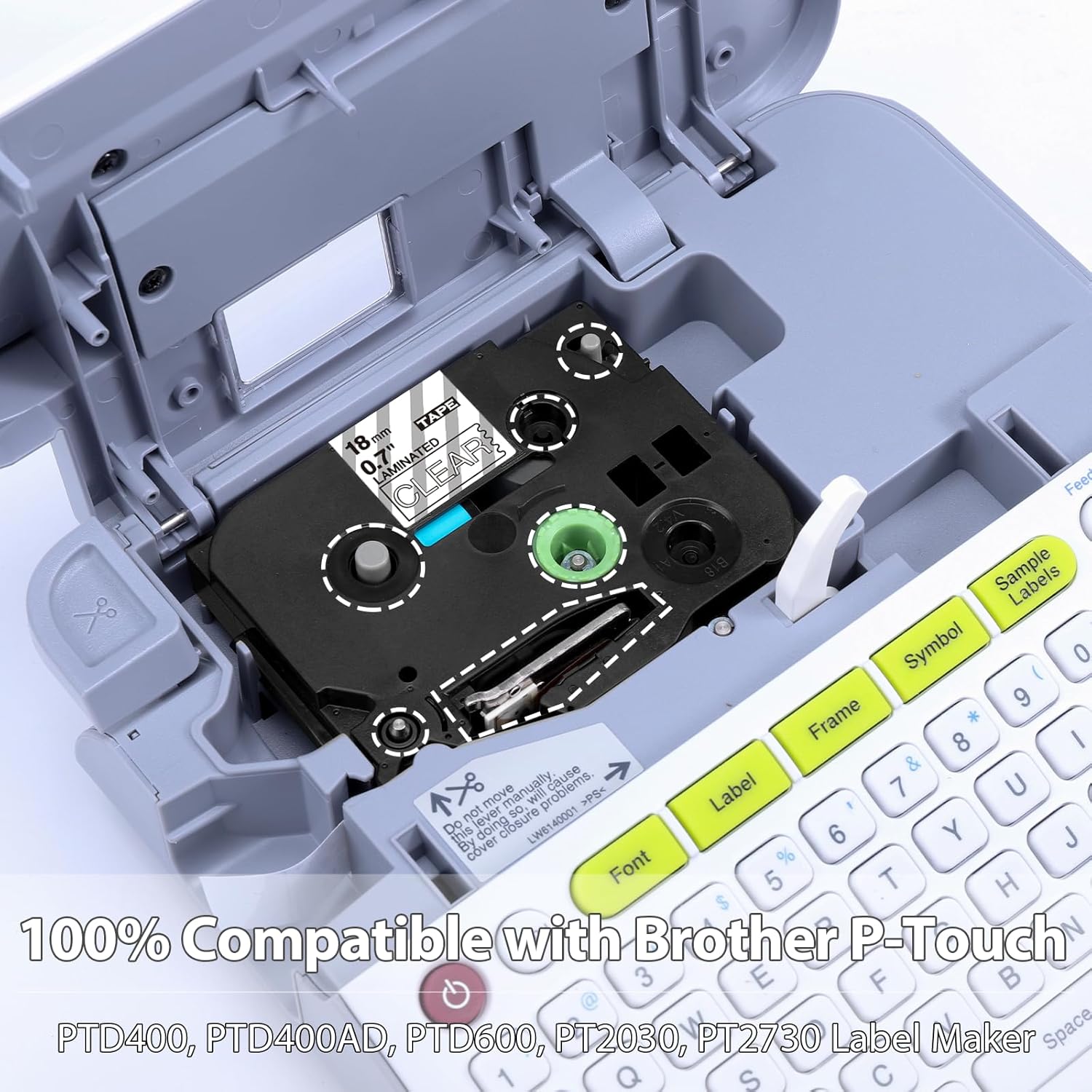 - Compatible with Brother p-touch label maker that using 18mm 0.7" clear tze tape, such as PT-D400 PT-D600 PT-D410 PTD400AD PT-D610BT PT-P900W PT-P950NW PT-P700 PTD600VP PT-P750W PT-P710BT PT1700 PT1750 PT1880 PT1890 PT1900 PT2040 PT2300 PT2700 PT2730, etc.