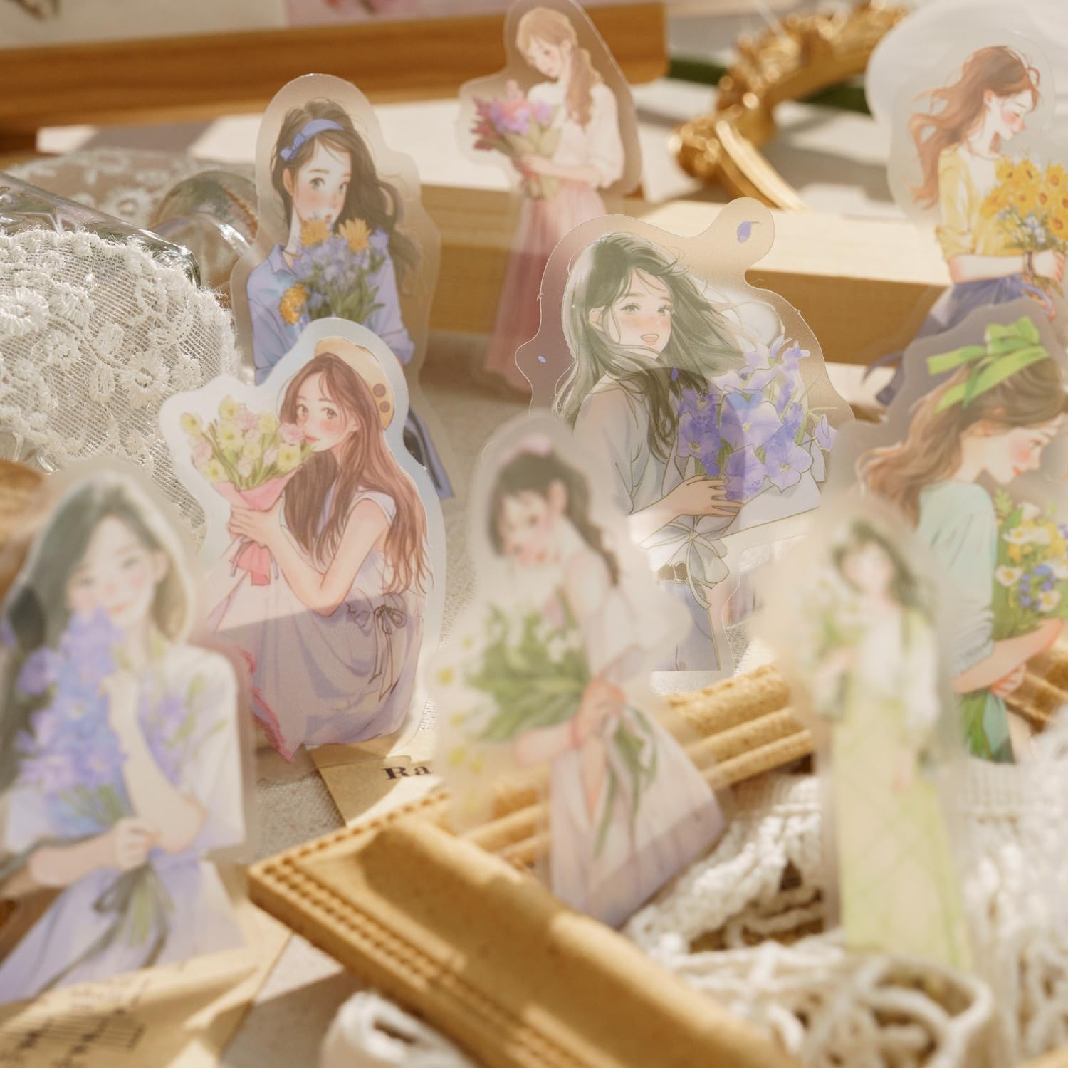 Alideco 120pcs Scrapbook Stickers Kawaii Fresh Sweet Girls People Journaling Scrapbooking Junk Journal Crafts Embelishment Decoration Diary Stickers(huaerzilianqu)