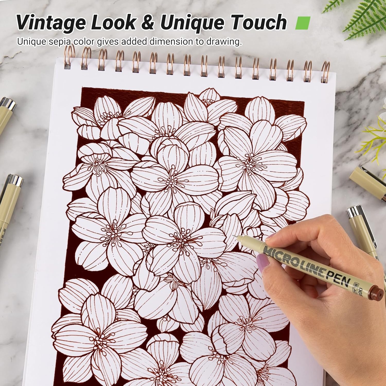 - šØ Unique Sepia Ink: KERIFI sepia micro pens uses highly saturated sepia pigments, unlike the touch provided by black lines, sepia ink makes the lines in the drawing subtle, giving it some elegant vintage flair. Paired with watercolor painting, the drawing is softer and added dimension to drawing. Let's do a variety of bold creative attempts, such as painting some tree trunks, tree houses, autumn scenery, landscapes and portraits.