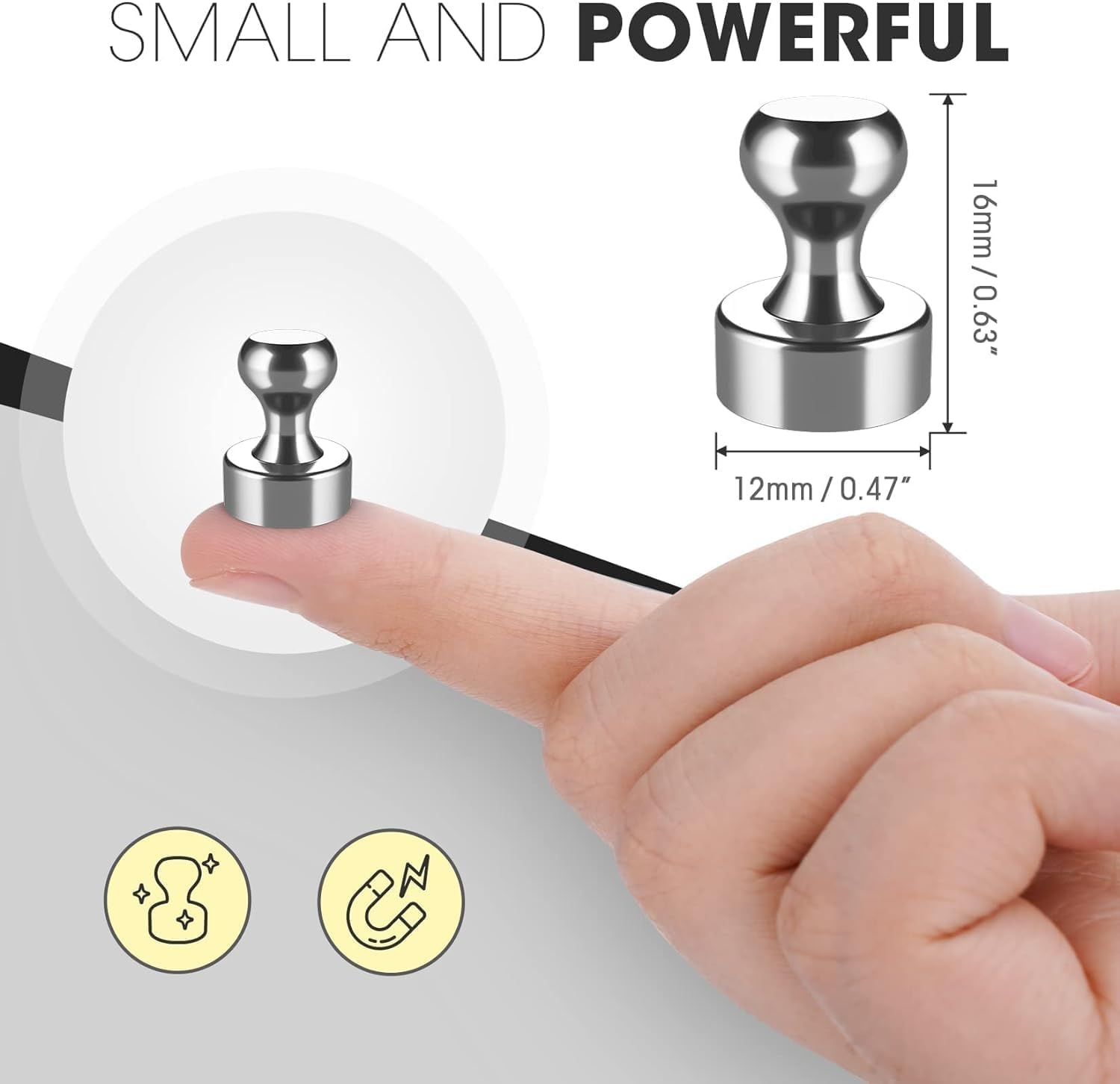 - 【Versatile and Powerfull】These magnetic push pins are highly versatile and offer strong adhesion, securely holding up to 12 sheets of paper or other lightweight items on magnetic surfaces.