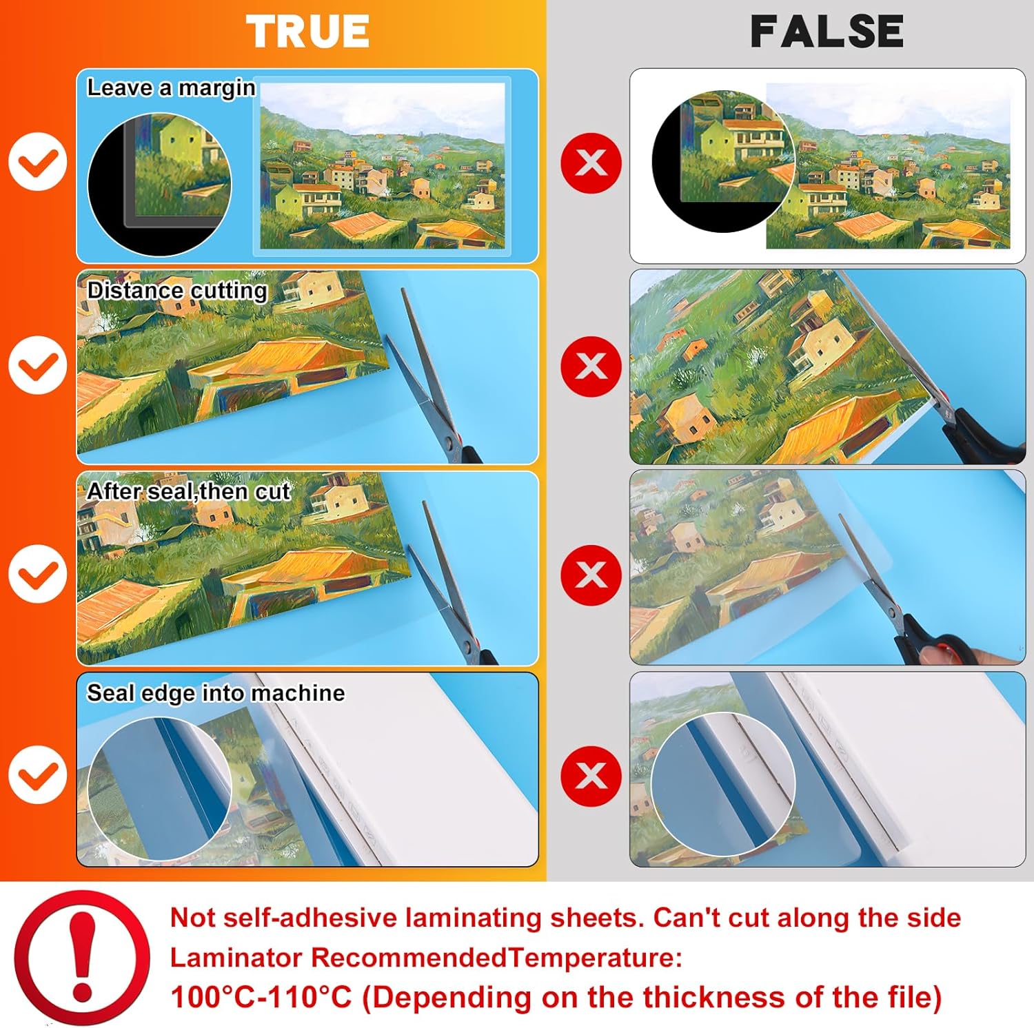 - Excellent Clarity:The laminating sheets only use high-quality adhesive for best transparency to ensure that the photos and documents are clearly visible let important information show through! Round corner design, safe to use