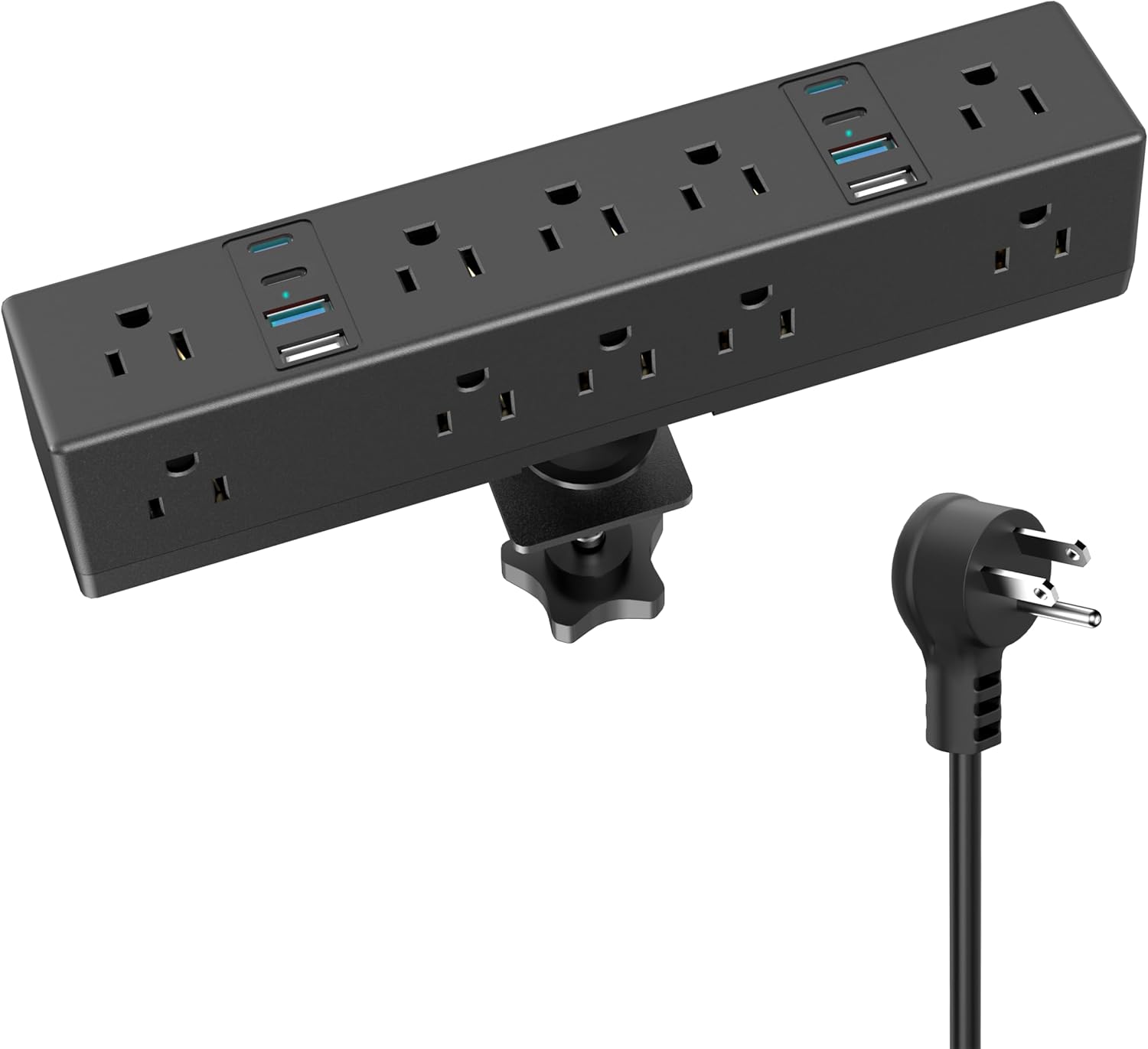 - 【18-in-1 Desktop Clamp Power Strip】-This extension cord with multiple outlets combines 10 AC outlets (125V12A/1500W) and 8 USB ports (4 USB-A, 4 USB-C), providing power and charging for up to 18 devices, helping to keep your office desk accessories and workspace free from messy wires.