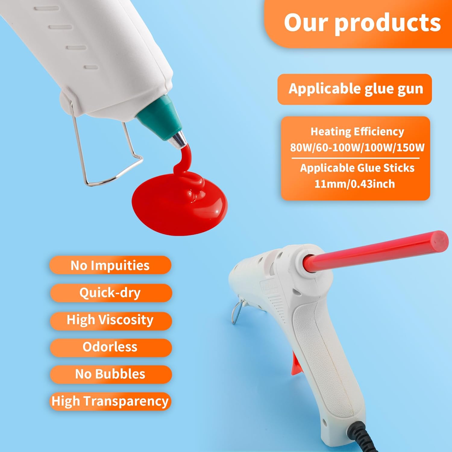 - 【Wide Application】hot glue gun sticks are perfect for crafting, card making, scrapbooking, carton sealing, phone case beauty, electronic appliances, gluing projects, waxing seal stamp, general repairs,creating arts, holiday crafts, decorations, home, office, school DIY and toys.