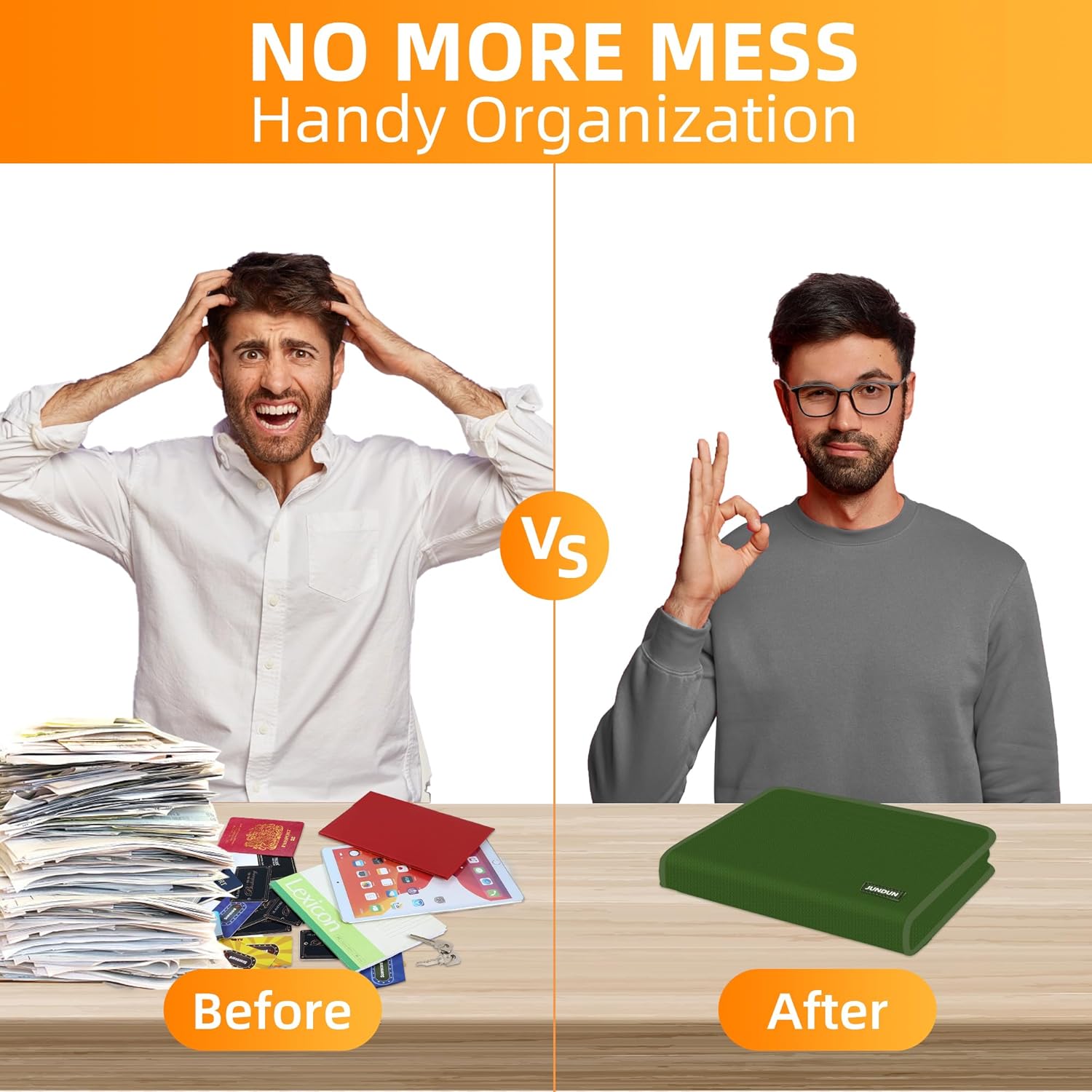 - PLENTY OF ROOM: Our Accordian File Organizer has 13 individual pockets,1 zipper pocket,1 pen slot,6 card slots,4 small mesh bags,4 medium mesh bags,and 1 main pocket,all in a compact size of 13.97"x10.43"x1.96".With ample space,you can securely store all your important documents and other items in this accordian folder while effectively classifying and finding your files