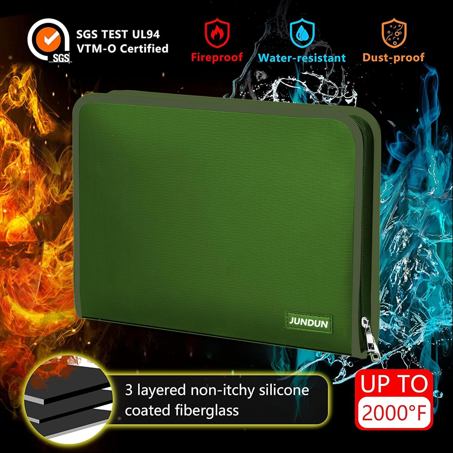 - HIGH-QUALITY MATERIALS: Protect your documents with our fireproof accordion file organizer.Made of double-layered,non-itchy,silicone-coated fiberglass,it can withstand up to 2000℉ and has passed the SGS Test (UL94 VTM-0 Certified). Highly water-resistant,it's the perfect solution for unexpected spills or accidents.Keep your files organized and easily accessible with our expanding file organizer.Invest in added protection today!