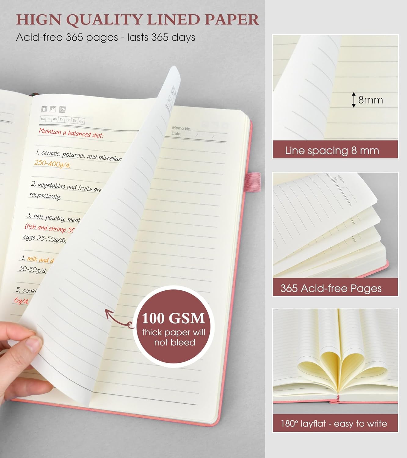 A5 Lined Journal Notebook - 365 Page Leather Journals for Writing Women & Men,Hardcover Notebook with 100Gsm Thick Pages,Daily Diary for Travel, Work,School,Note Taking,College Ruled (5.9" x 8.5")