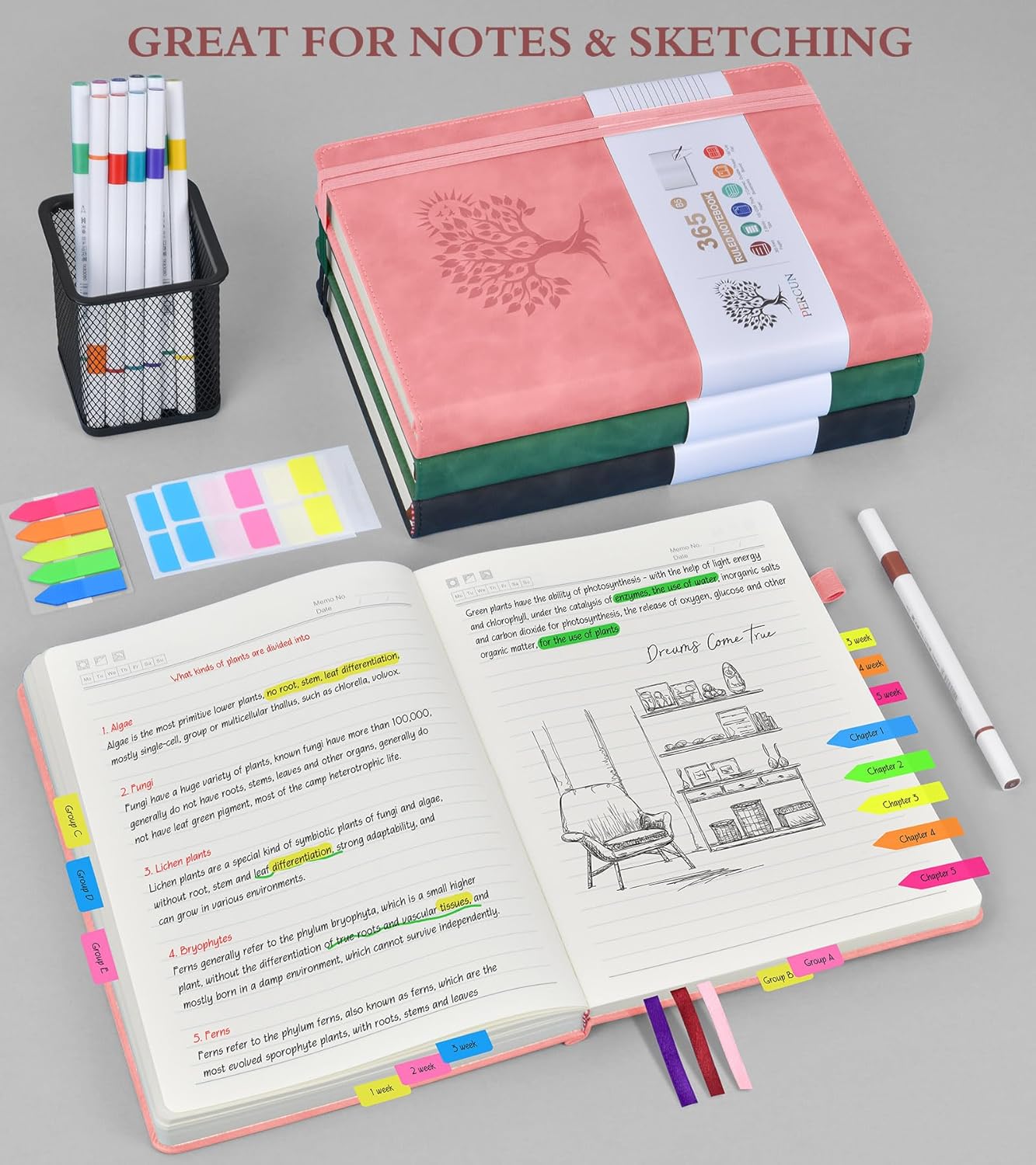 - 【365 Pages Premium Thick Paper】: Our PERCUN lined journal notebook is made of 365 pages high-quality 100Gsm thick ruled pager with an acid-free light Ivory paper that is thicker than normal. This premium quality paper will not cause bleeding, ghosting or smudging and is suitable for most types of pens,provides ample space for journaling, note-taking, and creative writing. The line spacing is 7mm, making it easy to write legibly and neatly.