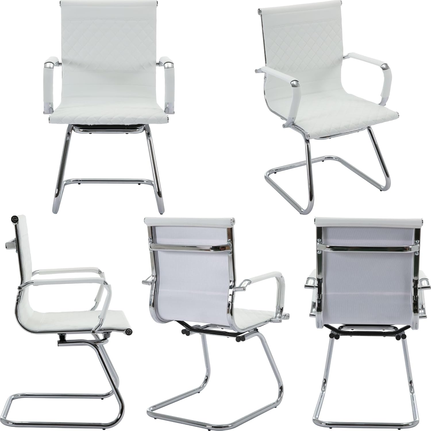 Office Guest Chairs - Set of 6 Modern PU Leather Desk Chairs for Reception, Waiting, and Conference Rooms - Mid Back, White