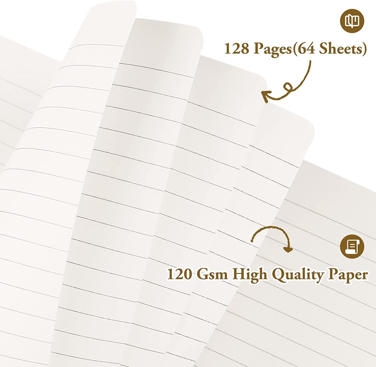 - Premium Thick Paper: Lined notebooks are completely blank inside and have 128 pages (64 sheets) for everyday use. 30 lines per page with 6mm spacing to give you plenty of room to write. Using high quality 120gsm paper, which is 35% thicker than normal paper. This thick paper accepts mechanical pens, gel pens, ink pens, glitter pens and highlighter pens for perfect notes and won't bleed. Protects your eyes from irritation and resists damage from light and air.