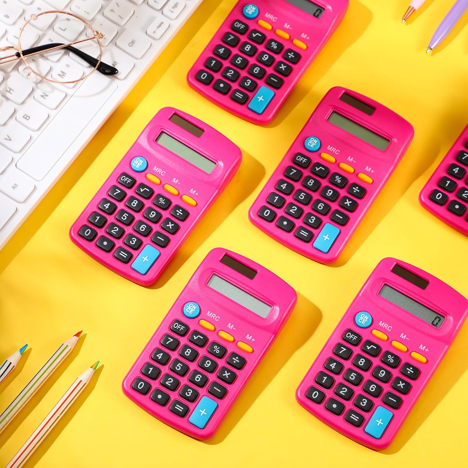 24 Pieces Basic Calculators for Students Small Pocket Size 8 Digit Display Mini Calculators Dual Powered Handheld for School Desktop Home(Rose Red)