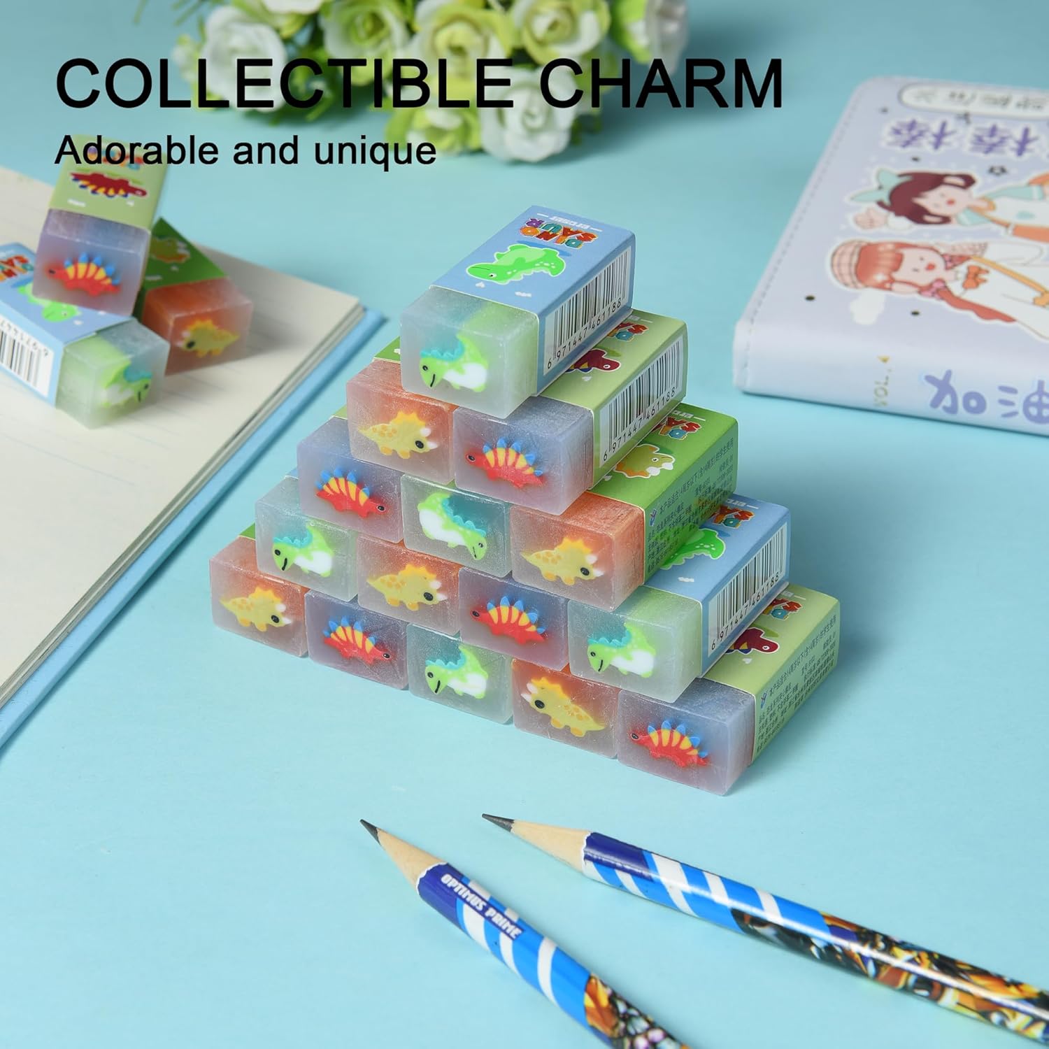 - Fun Dinosaur Erasers: Enjoy cute and kawaii dinosaur-shaped erasers